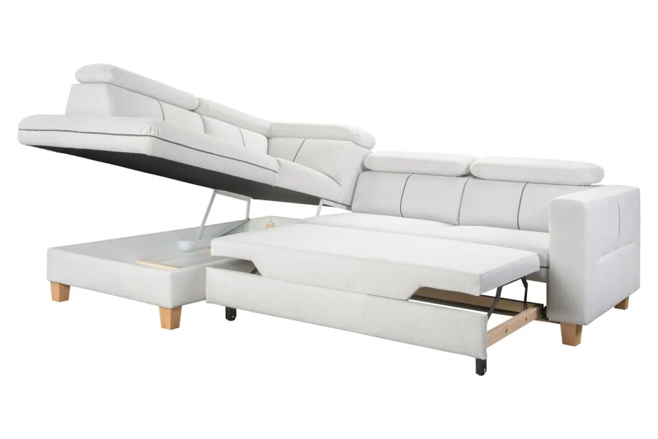 W bocznej części narożnika znajduje się pojemnik. Schowaj w nim pościel, kole lub inne tekstylia i zaoszczędź miejsce w szafie.