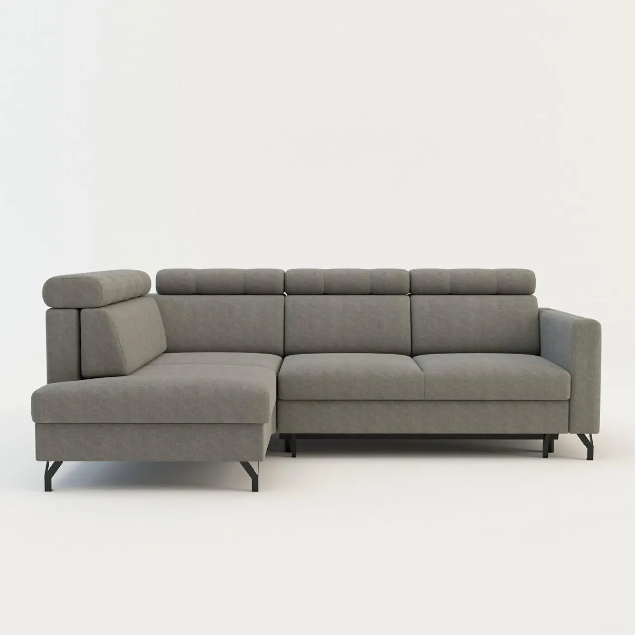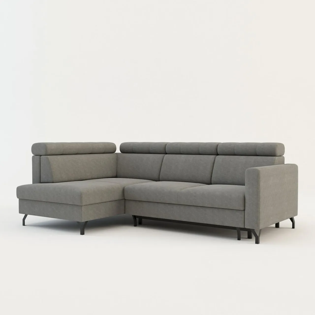 - Pojemnik na pościel w leżance zapewni przestrzeń na pościel, koce i inne domowe tekstylia. Możesz z niego korzystać, nawet jeśli narożnik będzie rozłożony.