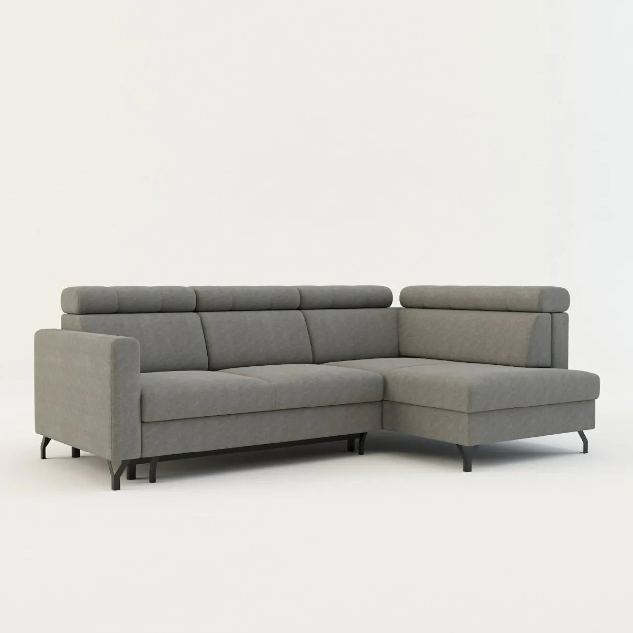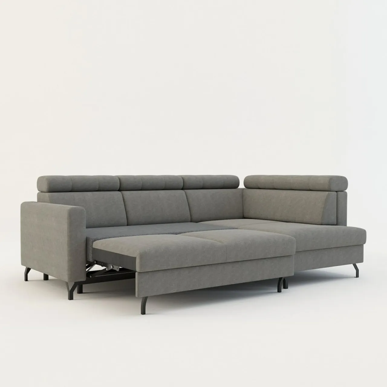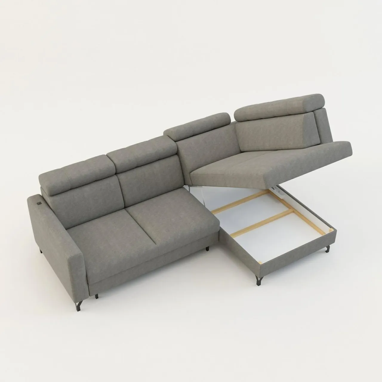 - Pojemnik na pościel w leżance zapewni przestrzeń na pościel, koce i inne domowe tekstylia. Możesz z niego korzystać, nawet jeśli narożnik będzie rozłożony.