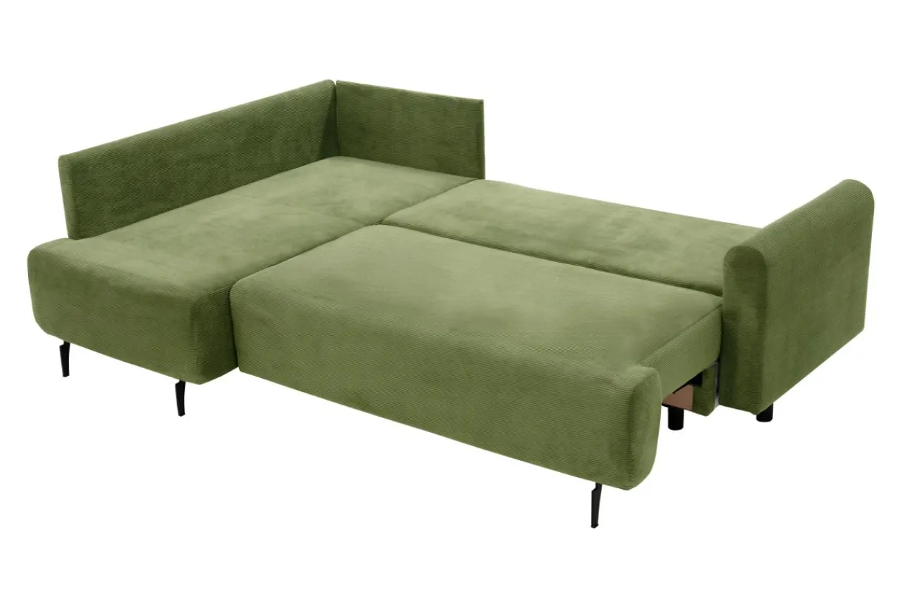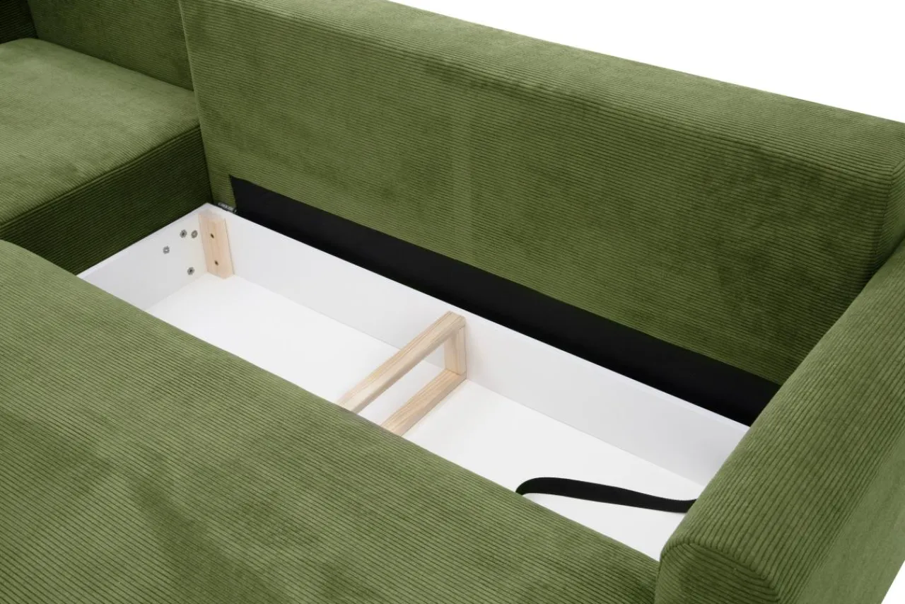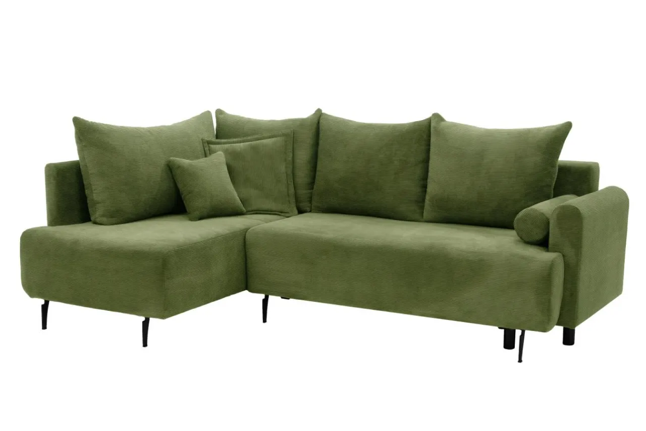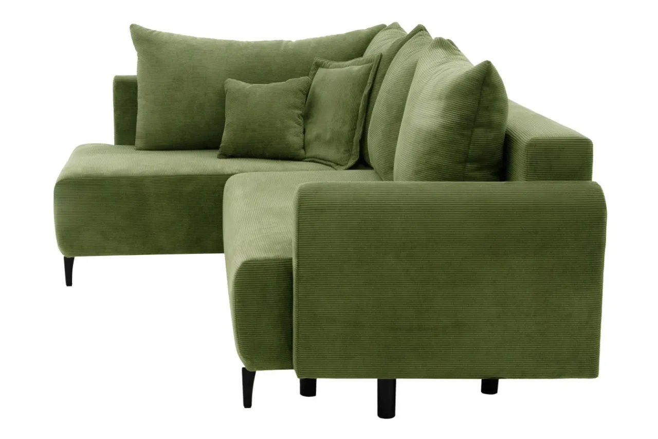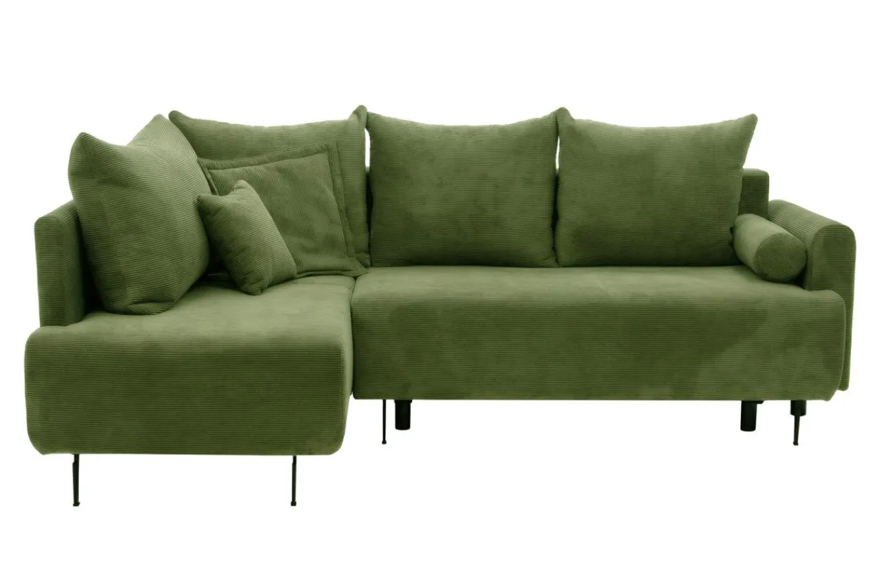 - Do obicia narożnika użyto mięsistej, sztruksowej tkaniny CAPRI w ciemnozielonym kolorze, którą docenisz za ciekawy wygląd i miękkość.