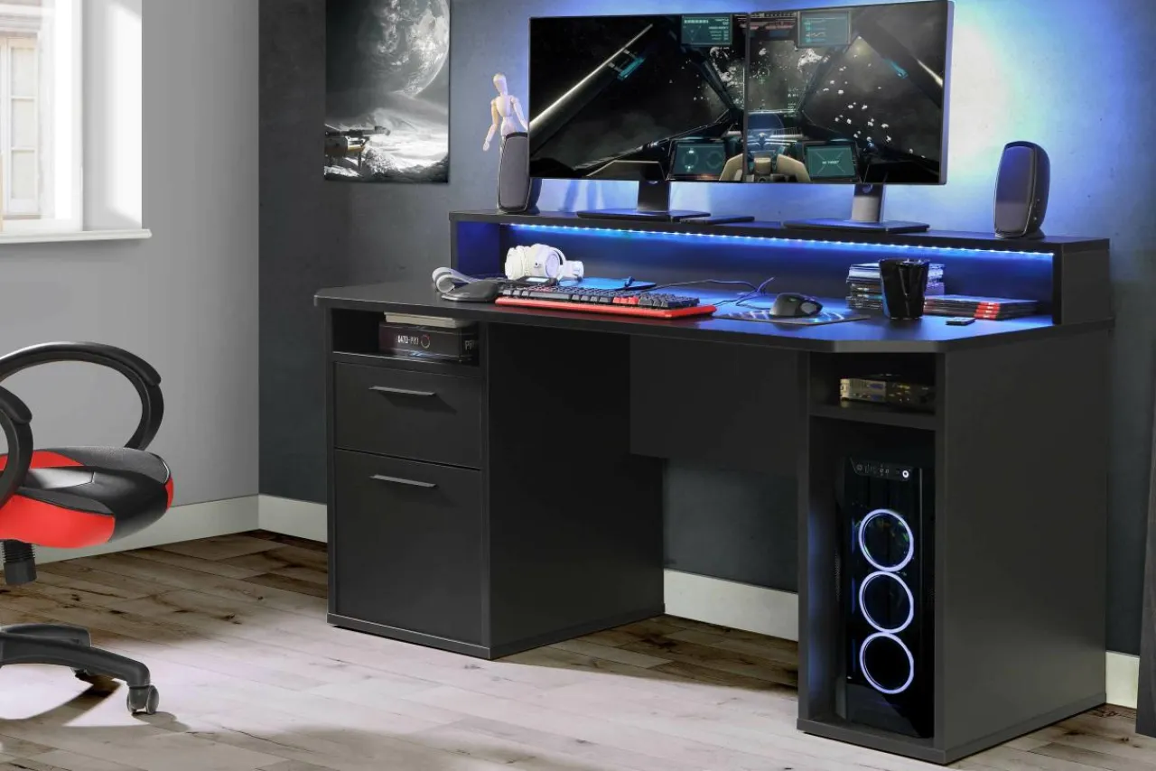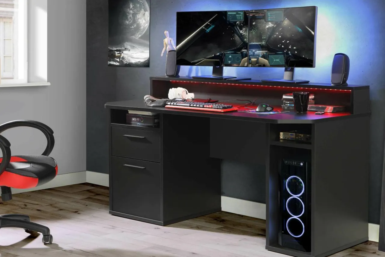 FORTE Biurko gamingowe TEZAUR czarne