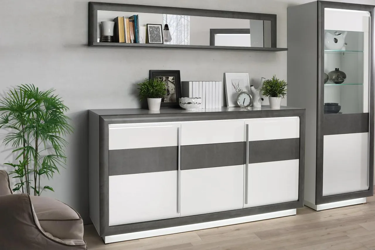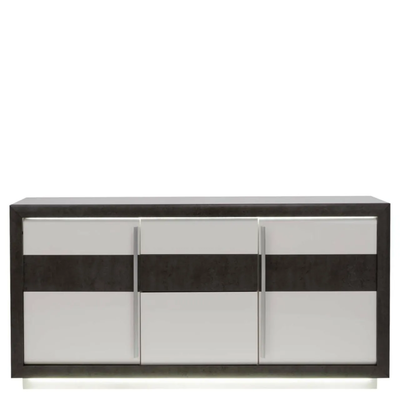 Zawiasy w drzwiach wyposażone w hamulce nie hałasują w trakcie zamykania. Szuflady z kolei wyposażono w system push to open dzięki czemu wystarczy delikatnie nacisnąć front by je otworzyć lub zamknąć. Bogactwo wyposażenia komody wieńczy oświetlenie LED. Są to dwie szerokie listwy LEDowe montowane w dwóch miejscach, pod wieńcem i pod cokołem. Sterowanie całym oświetleniem odbywa się za pomocą zamontowanego systemu dotykowego umieszczanego na korpusie. Rozwiązanie to ukrywa okablowanie i włączniki. Dlatego system dotykowy jest niezmiernie wygodny.