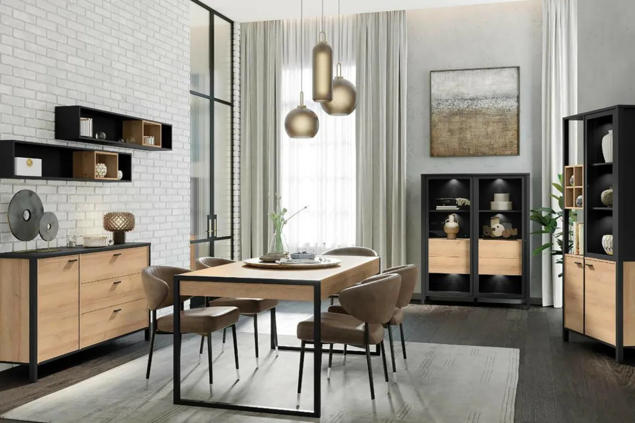 Urządzasz mieszkanie w industrialnym stylu? Kolekcja mebli HIGH ROCK to połączenie dekoru dąb riviera z pełną głębi czernią, która przyciągnie Twoją uwagę.