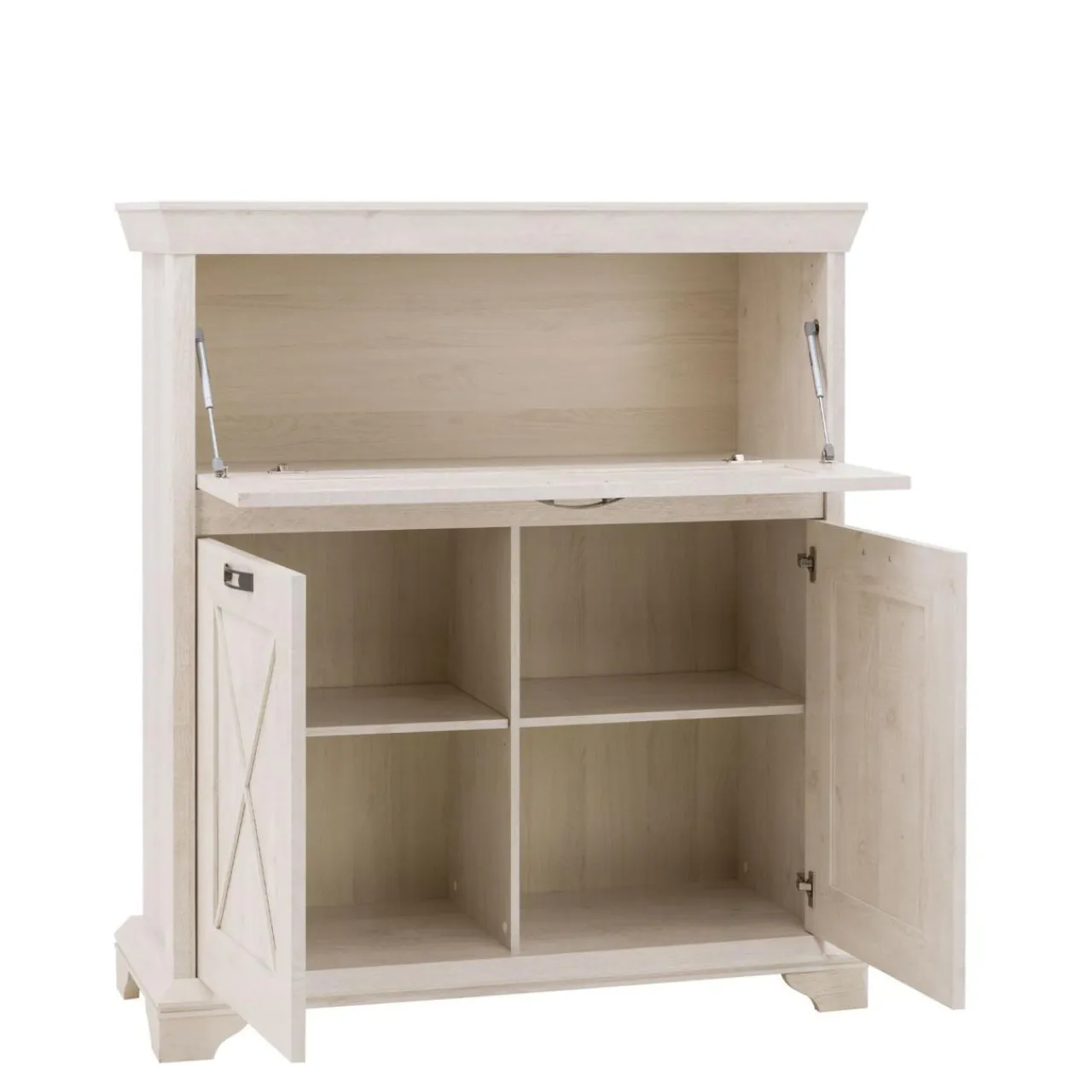 W 4 wnękach przechowasz szklanki, kufle i kieliszki. Otwierane klapowo drzwi do barku, ułatwiają wyciąganie szklanych naczyń.