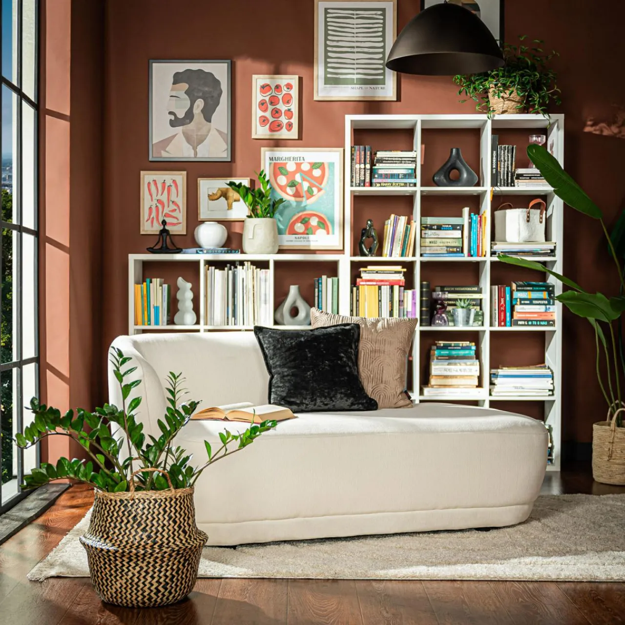 Regał MAURO może pełnić funkcję domowej biblioteczki. Pomieści zarówno prawdziwą kolekcję książek, jak i ulubione pamiątki lub dekoracje, dzięki którym Twój kącik do czytania nabierze przytulnego charakteru.