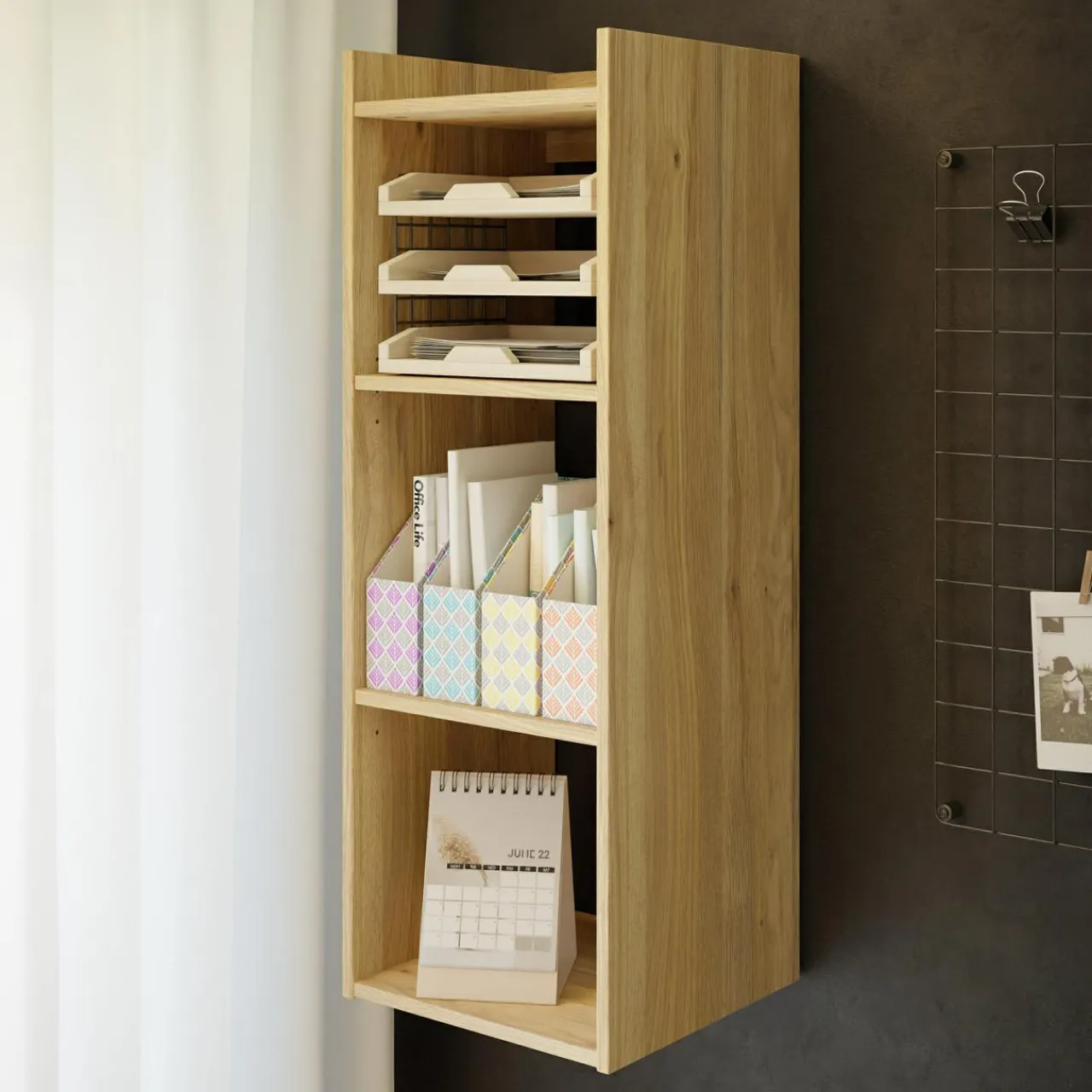 Mebel wykonano z płyty meblowej, którą pokrywa folia imitująca drewno dębowe.