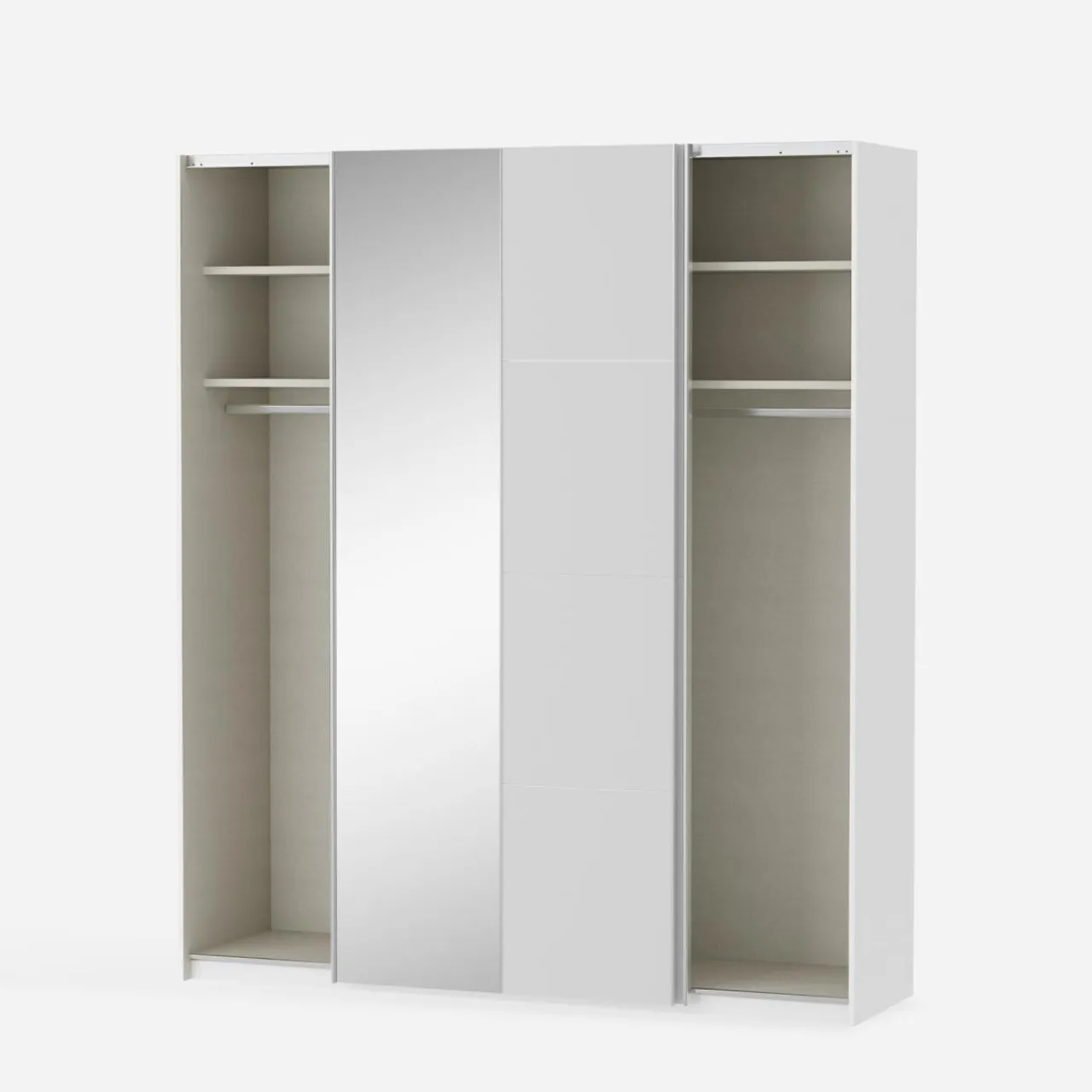 - Wnętrze gotowe na codzienność — wyposażone w 4 pojemne półki i 2 drążki na ubrania.