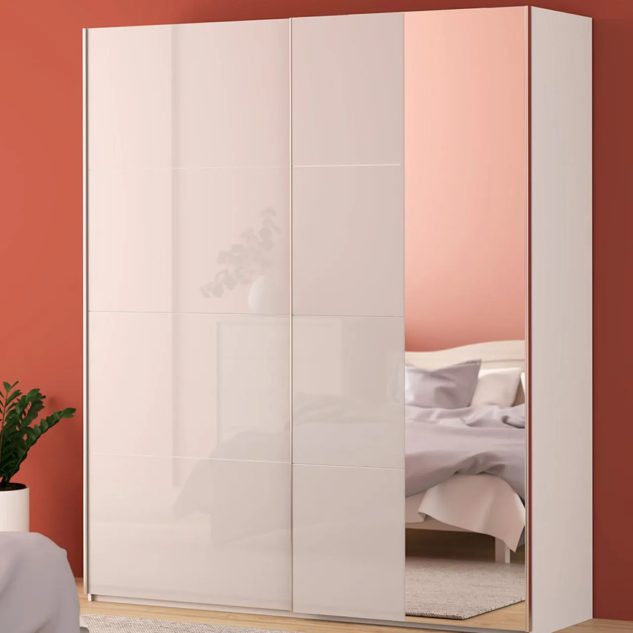 - Minimalistyczna bryła i różne warianty wykończenia — wybierz fronty w macie lub połysku, z lustrem lub bez.