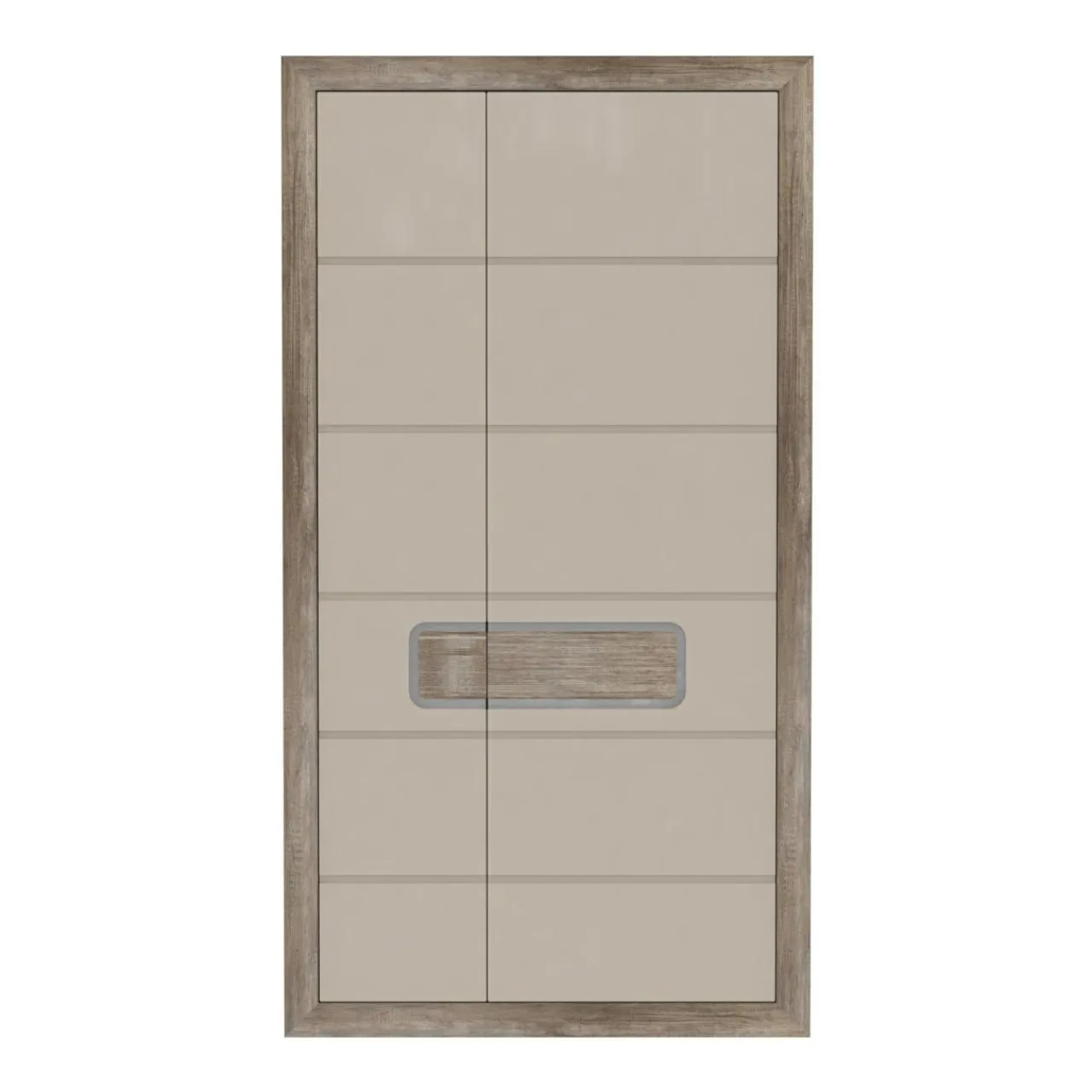 Szafa ubraniowa o nietuzinkowym wyglądzie, która będzie atrakcyjnym akcentem, a jednocześnie zwiększy funkcjonalność wnętrza. Korpus w kolorze dębu antycznego imitującego usłojenie drewna łączy się z frontami w beżowym połysku. Takie oryginalne wybarwienie świetnie komponuje się z innymi kolorami, więc możliwości tworzenia własnych aranżacji są niemal nieograniczone. To mebel dla osób, które cenią praktyczność połączoną z ciekawym designem. Uchwyty mają formę szerokiej, ryflowanej listwy, co doskonale komponuje się z całością.