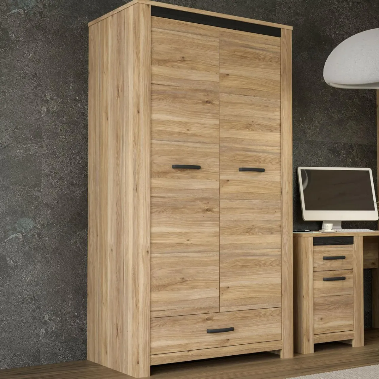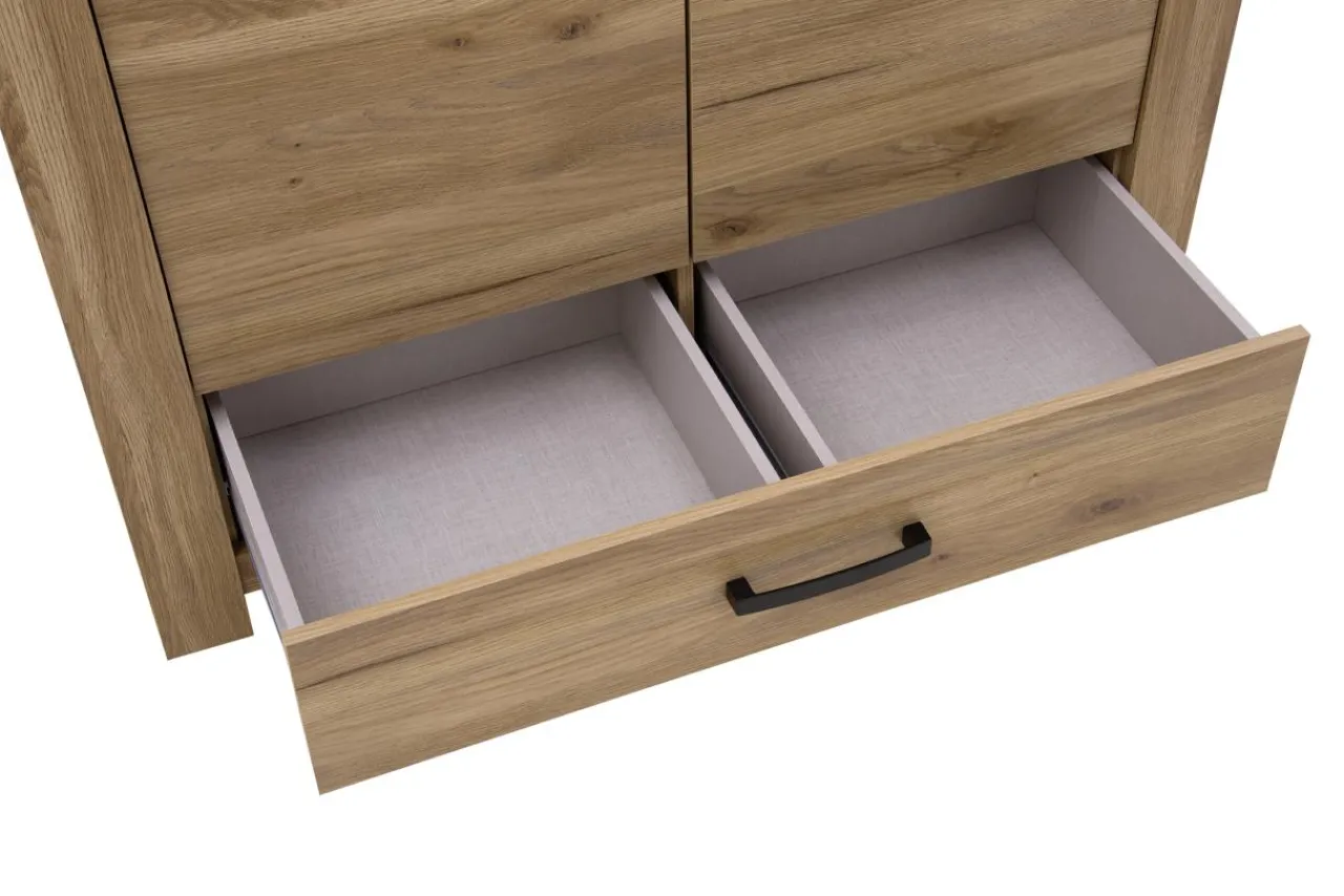 - Oprawa mebla to estetyczne połączenie 2 dekorów: jasnego dębu MAUVELLA oraz ciemnego dębu CABEZONE