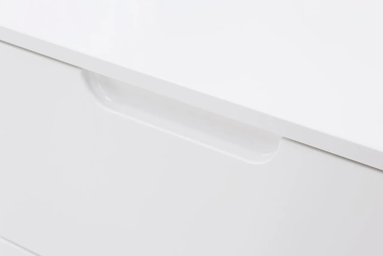 Biała, połyskująca kolorystyka i prosta forma pozwalają wykorzystać szafkę szczególnie we wnętrzach nowoczesnych i minimalistycznych.