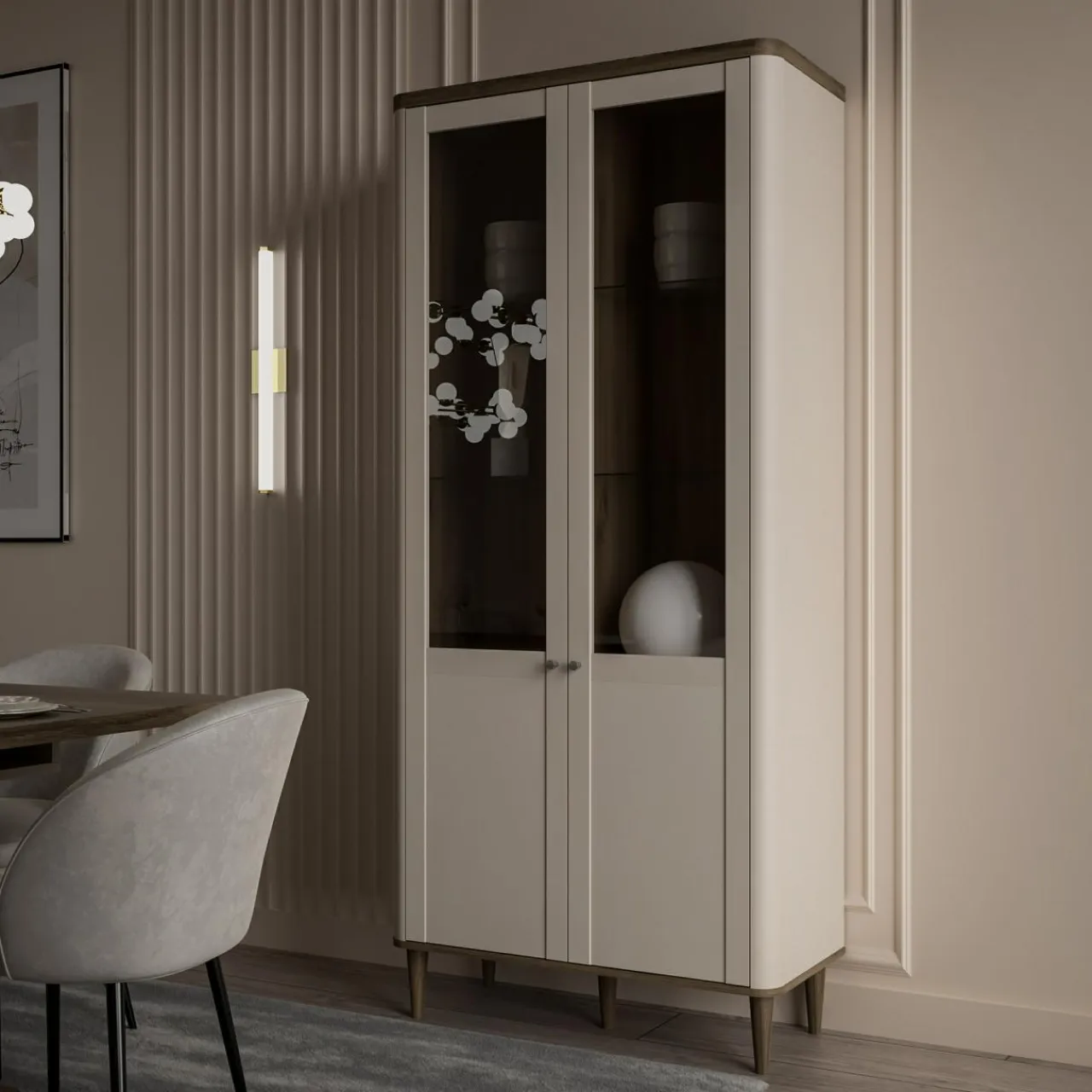 - Delikatnie zaokrąglone kształty korpusów, blatów i nóżek dodają lekkości, wprowadzając harmonię do wnętrza.