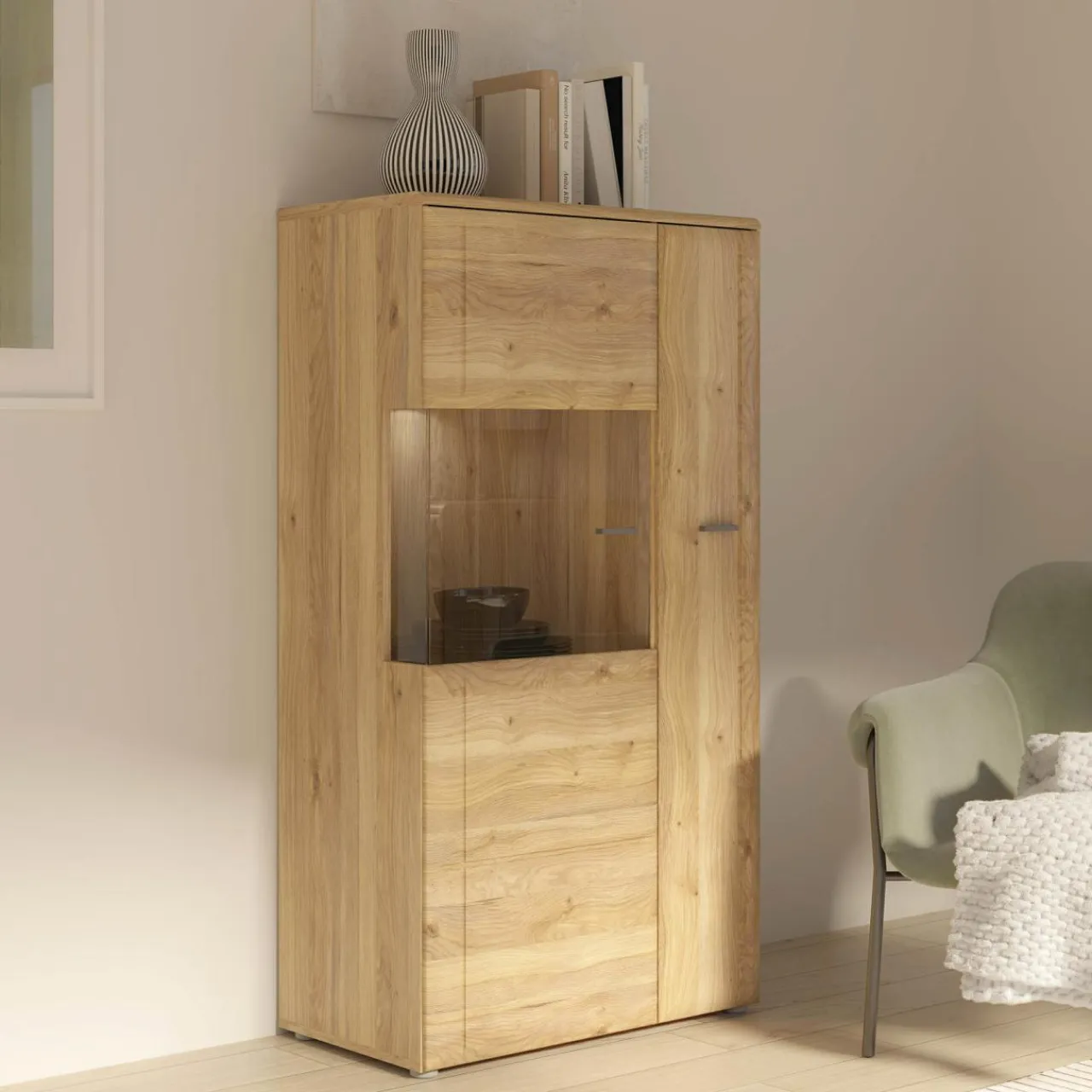 Witryna niska Akinori + Oświetlenie SQUARE 1-pkt, z wył, barwa ciepła