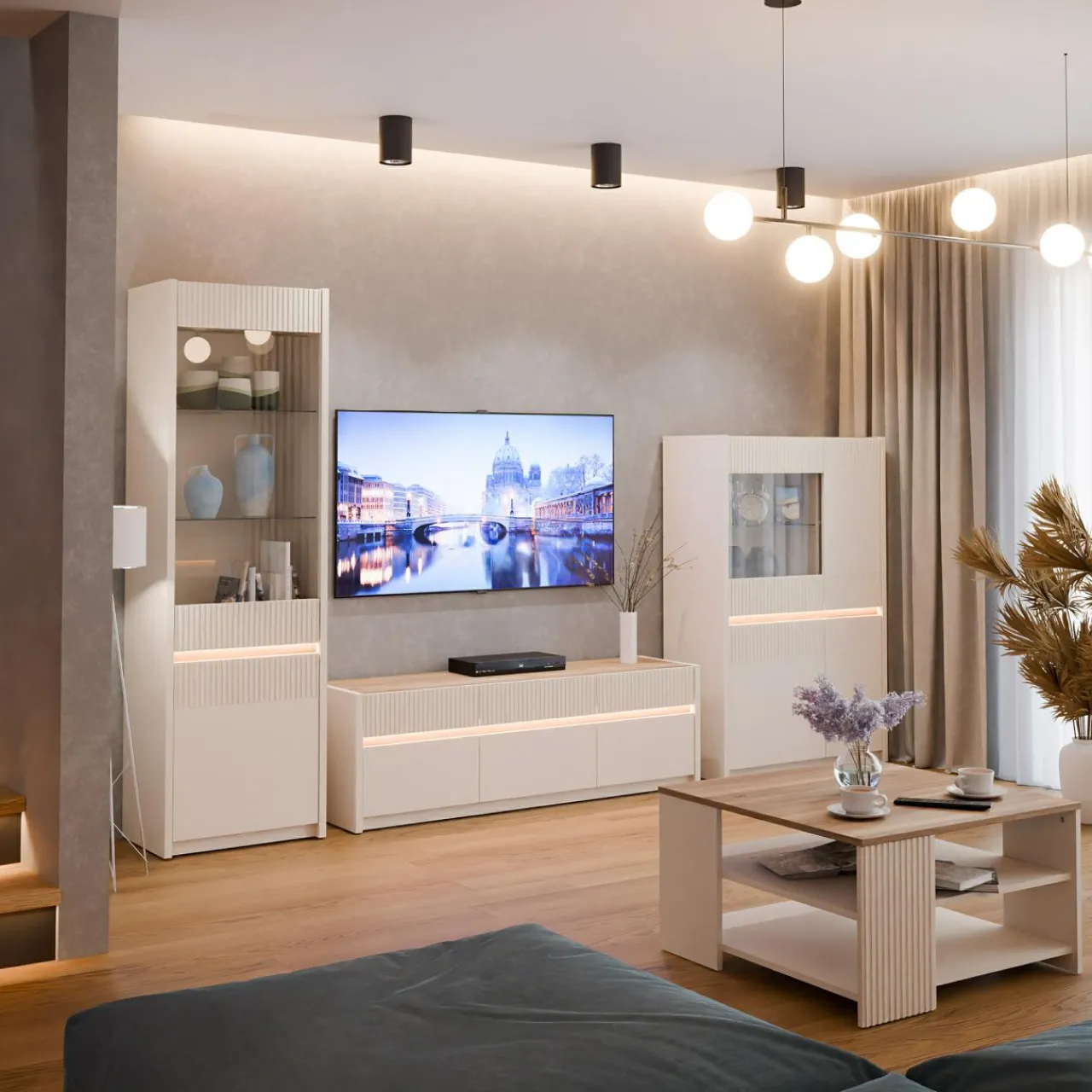 Witryna wysoka OAK SQUERE + oświetlenie dodatkowe
