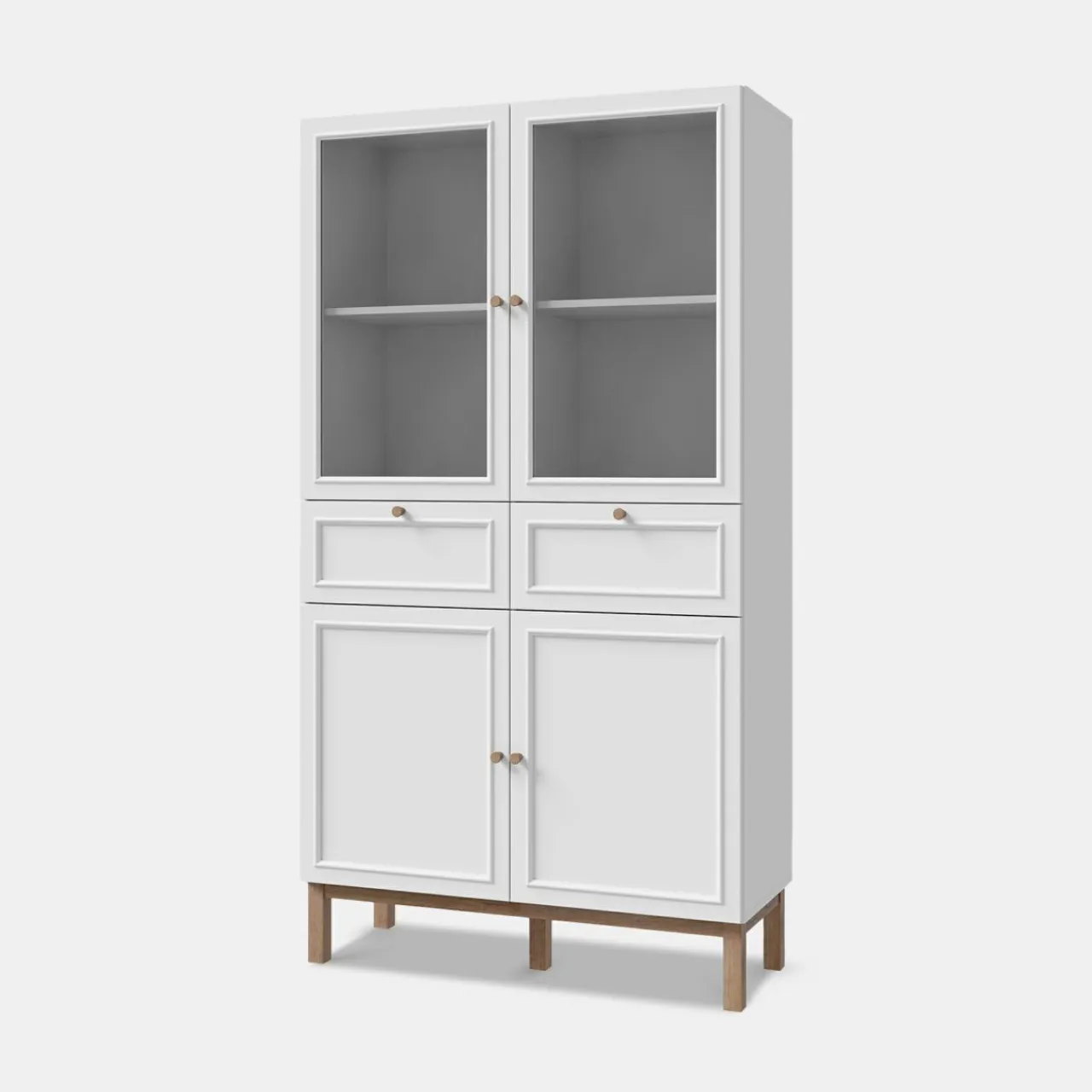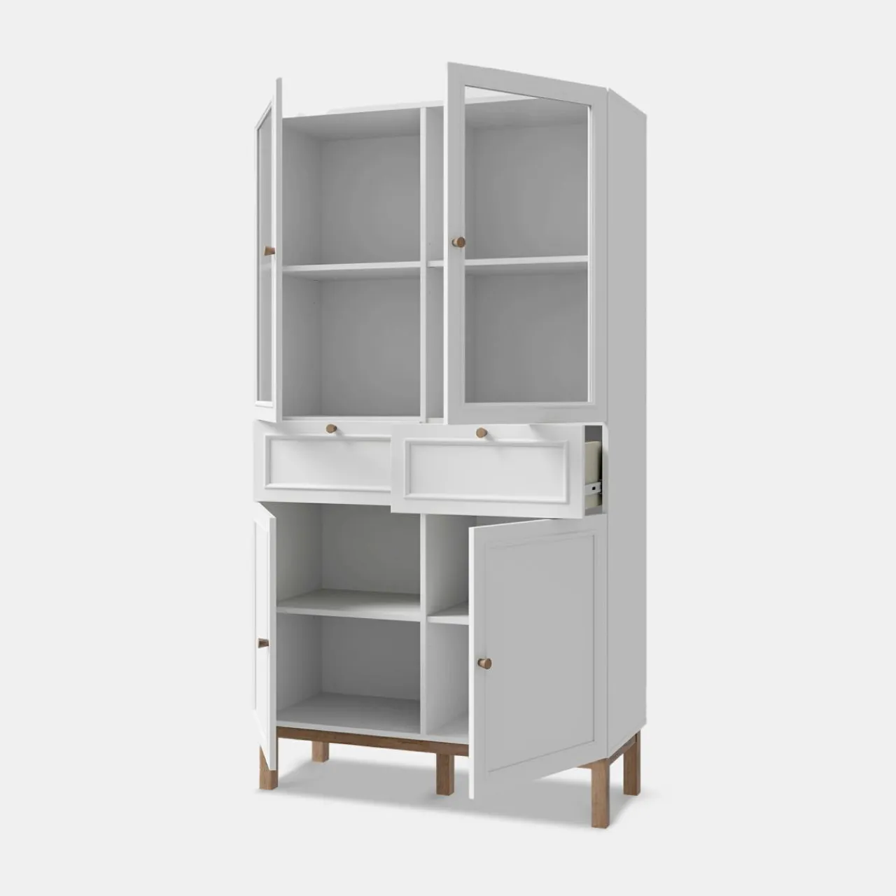- Na 4 półkach w witrynie wyeksponujesz swoje ulubione pamiątki, dekoracje czy zdobione naczynia.