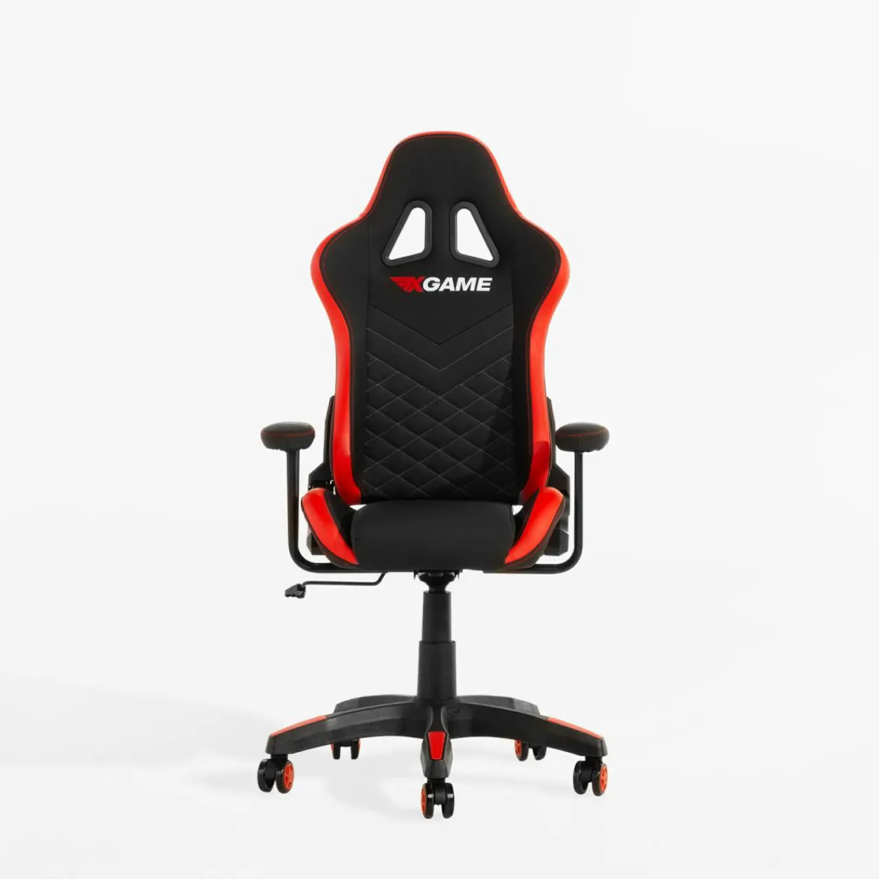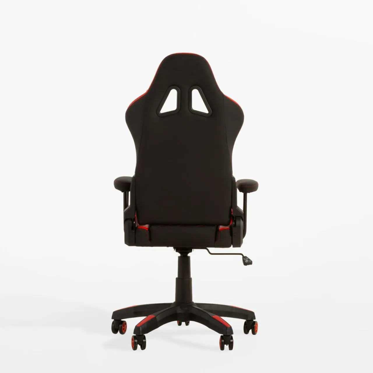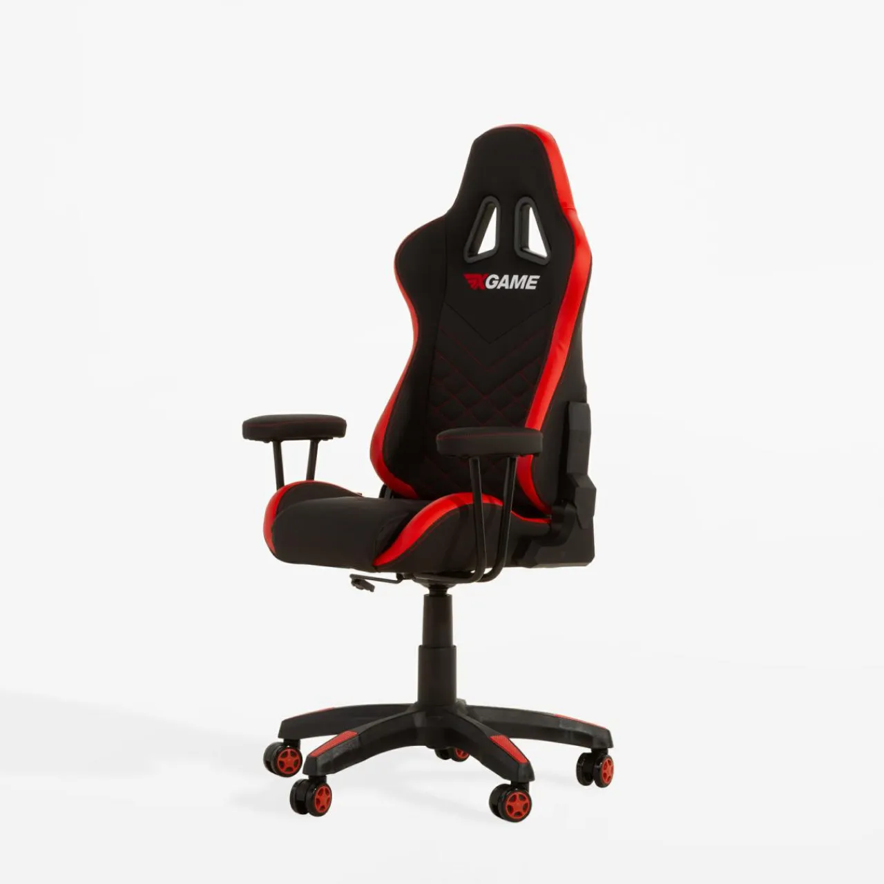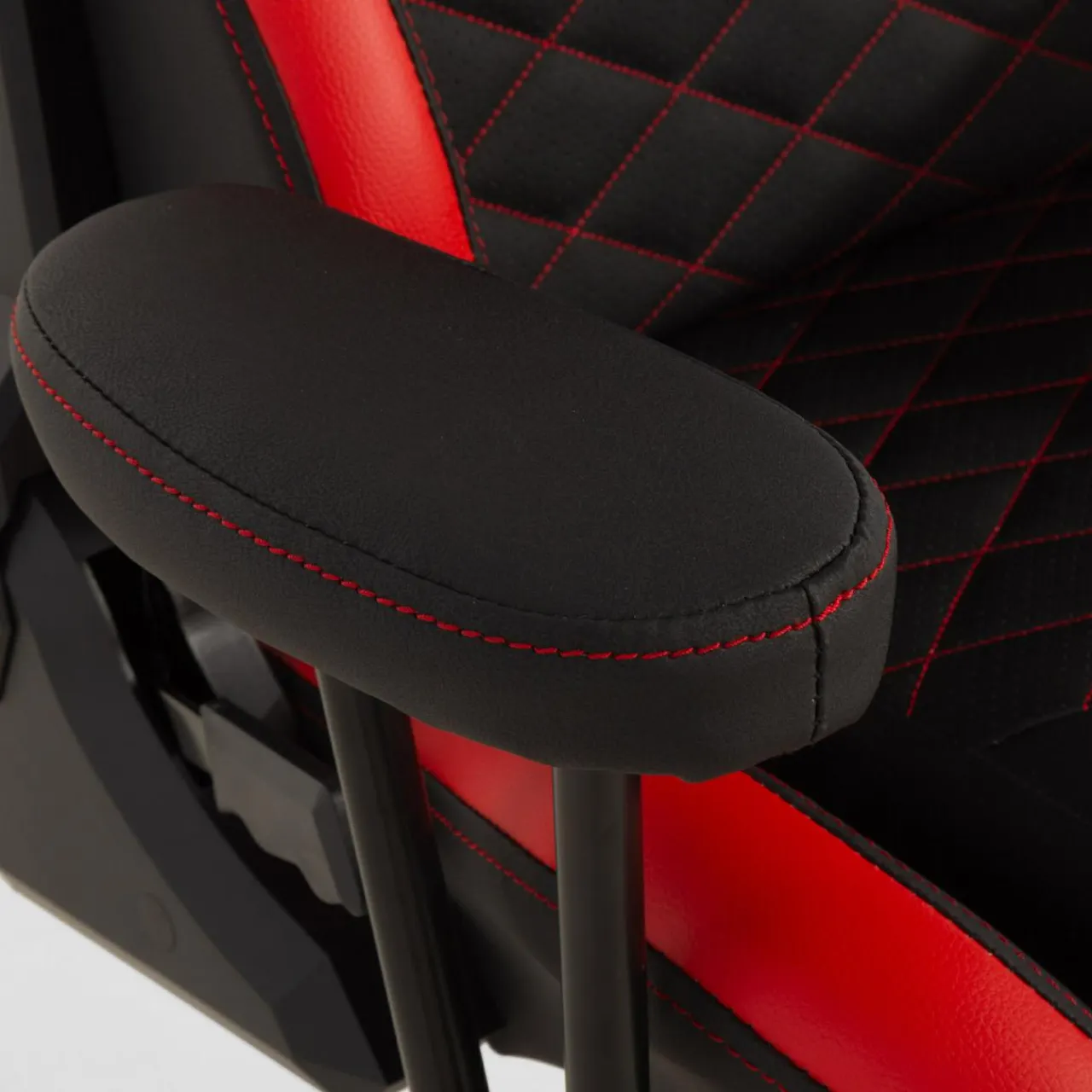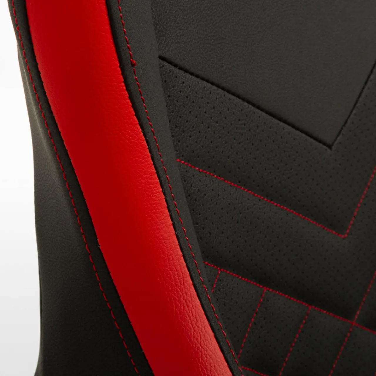 Połączenie czerwieni i czerni podkreśla sportowy charakter fotela.
