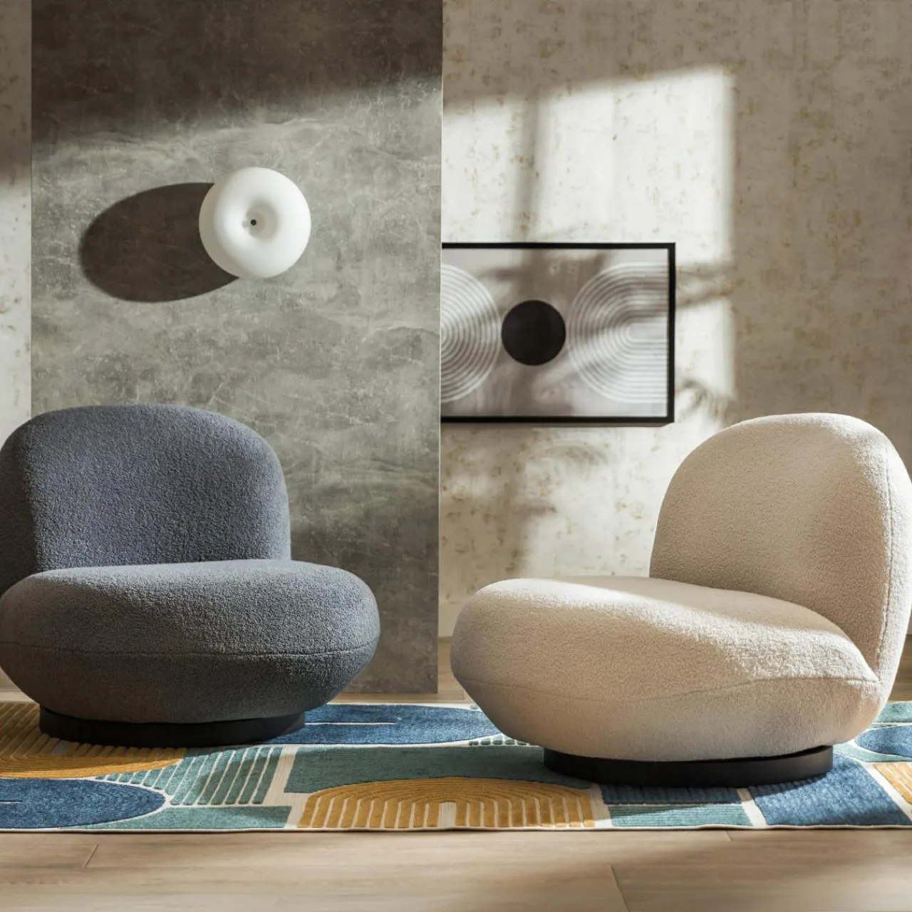 - Nietuzinkowe, obłe kształty idealnie sprawdzą się w salonie w stylu modernistycznym.