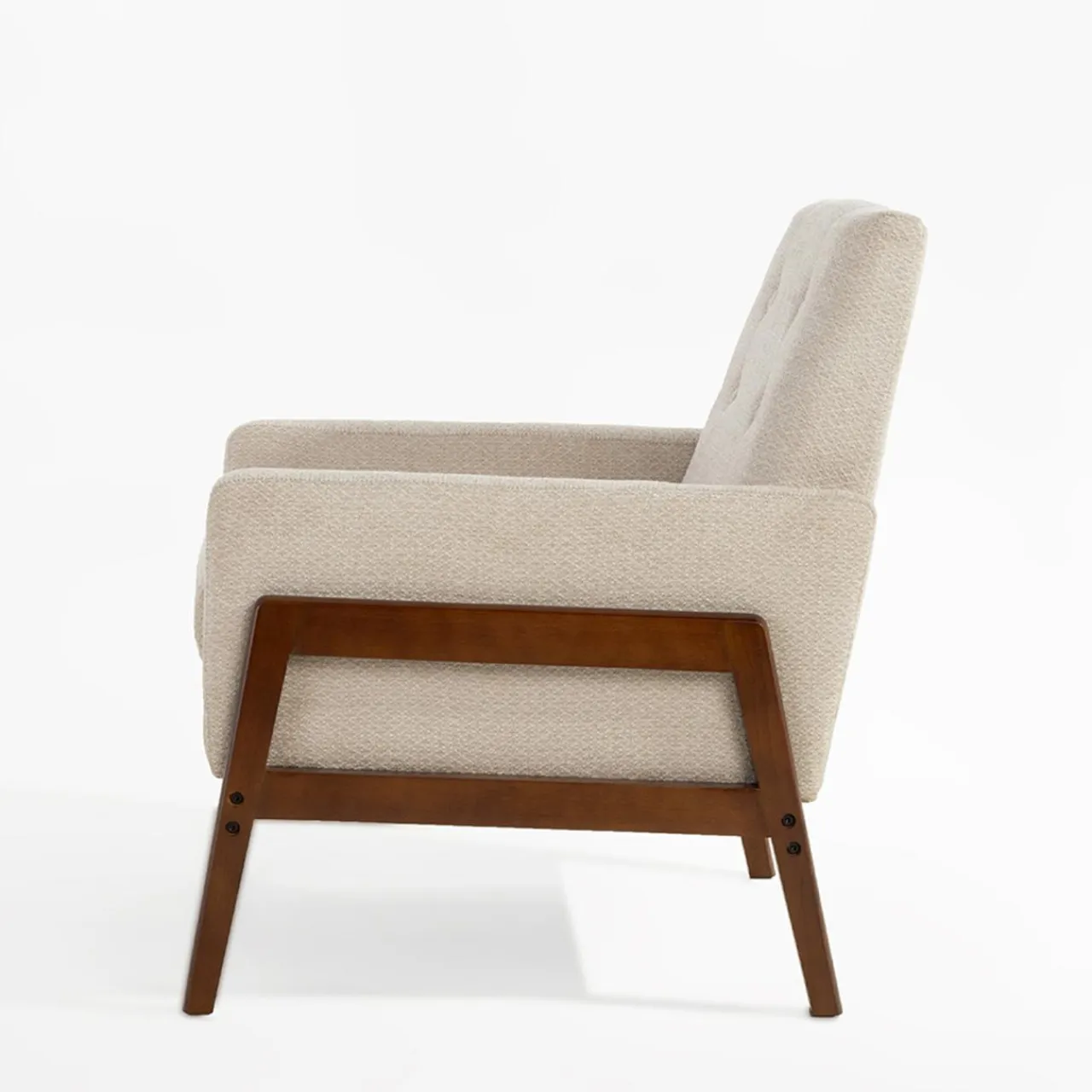Prosta linia fotela MIATU sprawdzi się we wnętrzach w stylu vintage lub retro. Konstrukcja z sosnowego drewna i nogi z litego kauczukowca malowane na kolor orzech będą świetnie współgrać z jasnymi ścianami i dodatkami w wyrazistych kolorach.