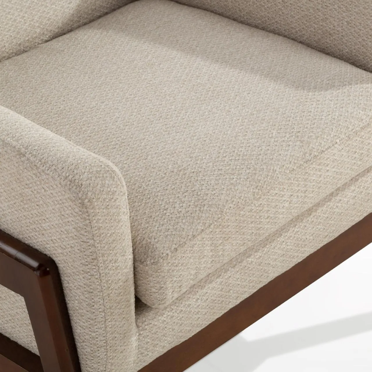 - Strukturalna tkanina w beżowym kolorze będzie pasować do dodatków w odcieniach bieli i beżu.