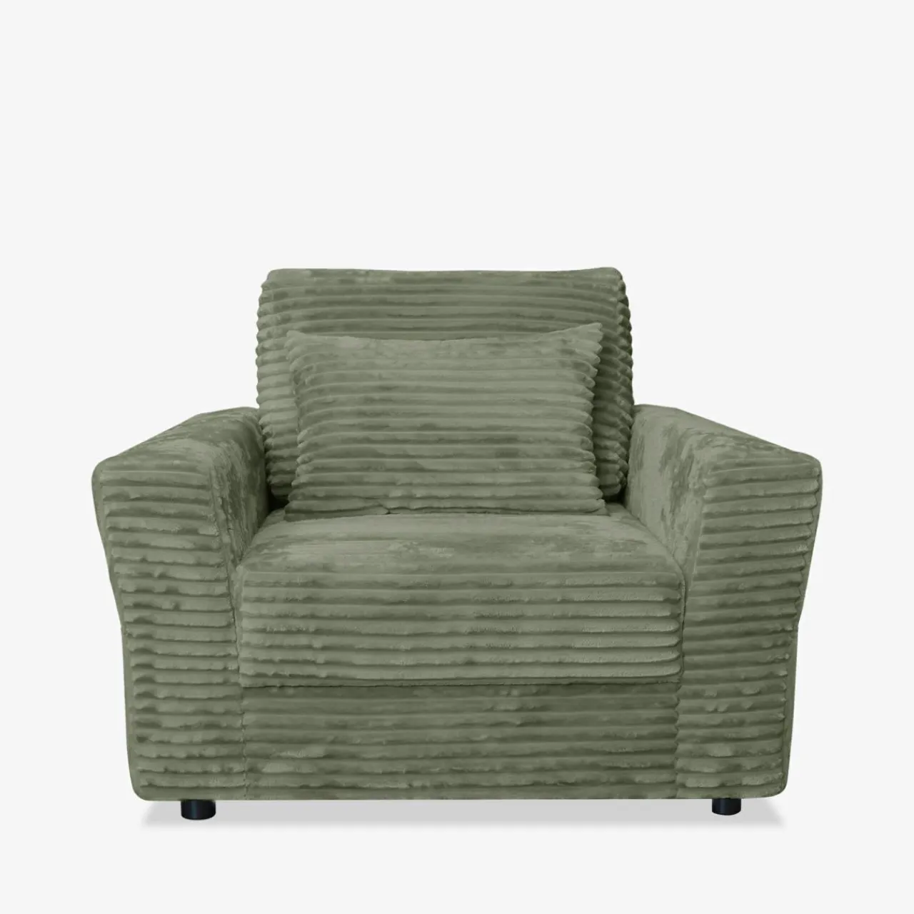 - Fotel pokryto puszystym sztruksem – siadając na nim, od razu poczujesz przyjemną miękkość i otulenie.