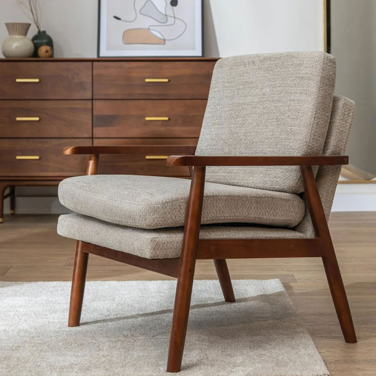 Chcesz dodać do swojego wnętrza prawdziwego retro akcentu? Postaw w nim fotel CROXTA w beżowej kolorystyce. Prosta forma inspirowana latami 80. będzie stylowo wyglądać w towarzystwie ciemnych mebli na wysokich nóżkach i wzorzystego dywanu w intensywnych kolorach.