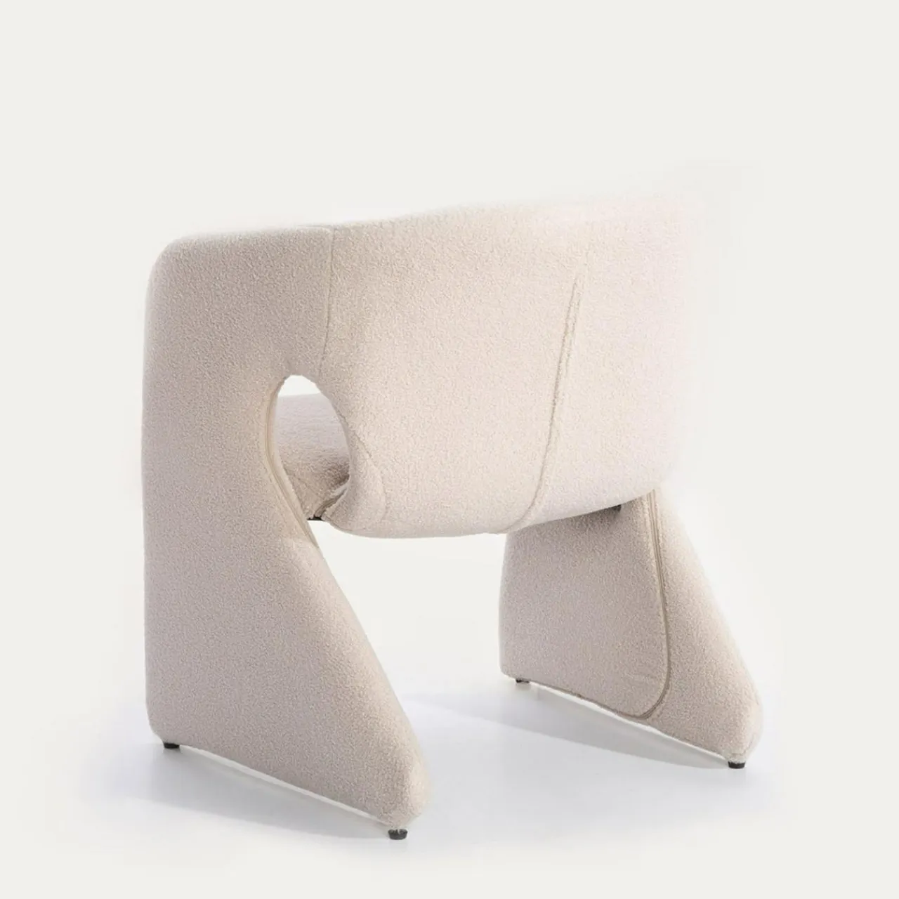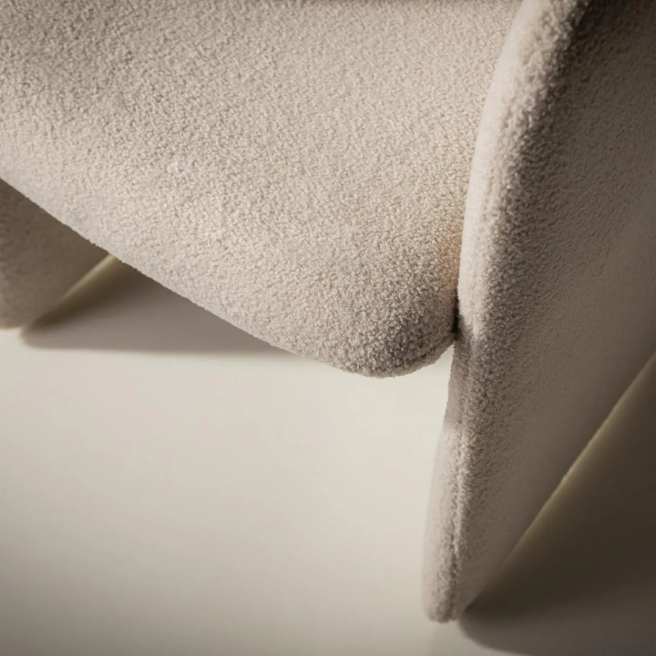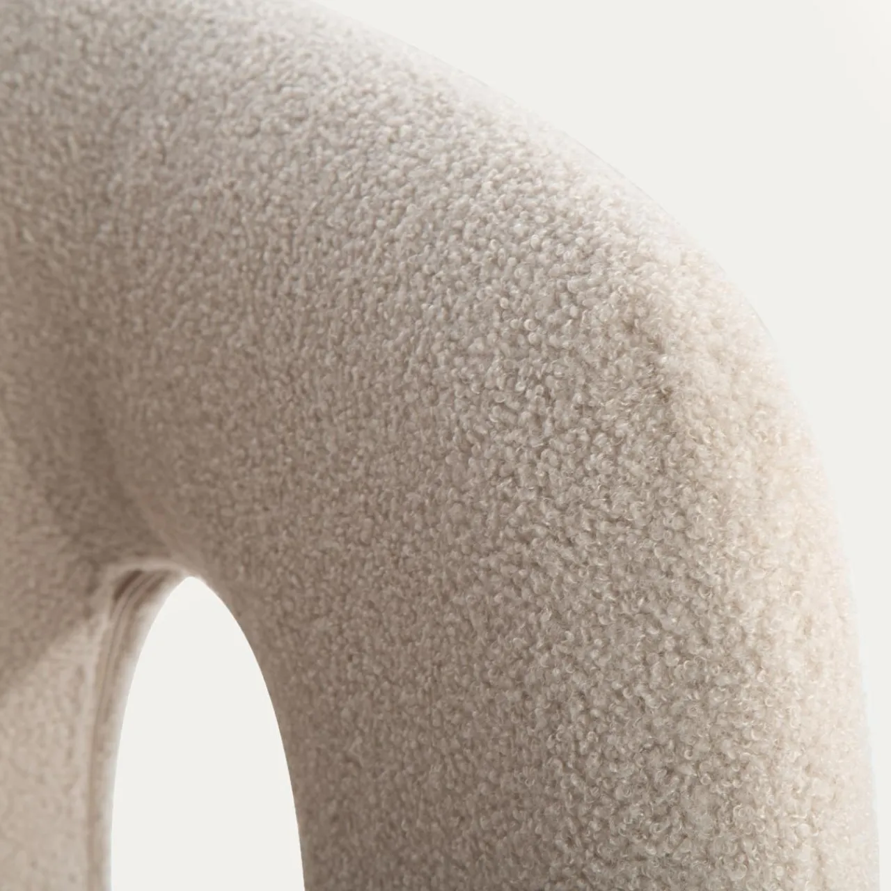 - Fotel pokryto miłą w dotyku tkaniną boucle w odcieniu beżowym. Siadając na nim, poczujesz przyjemną miękkość.