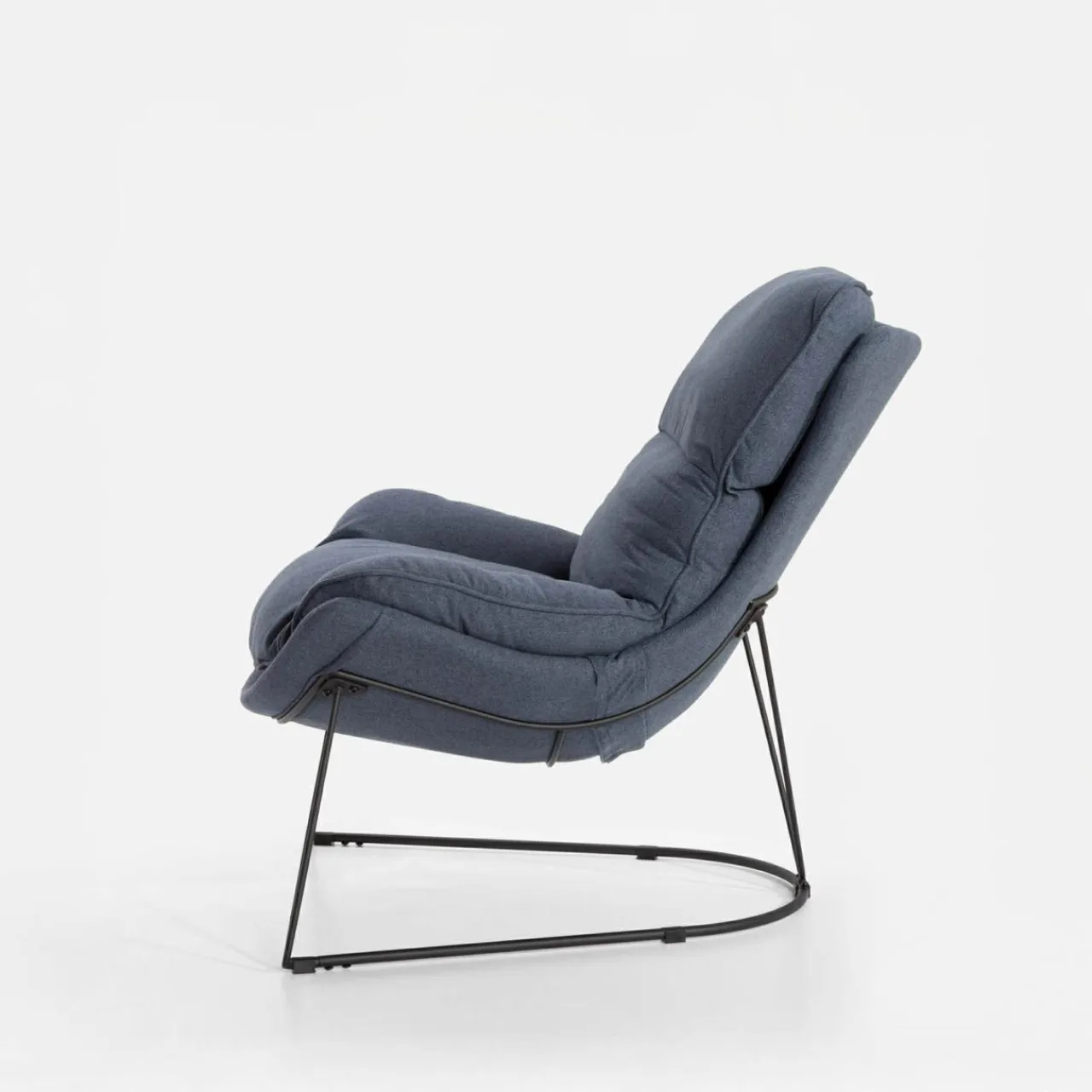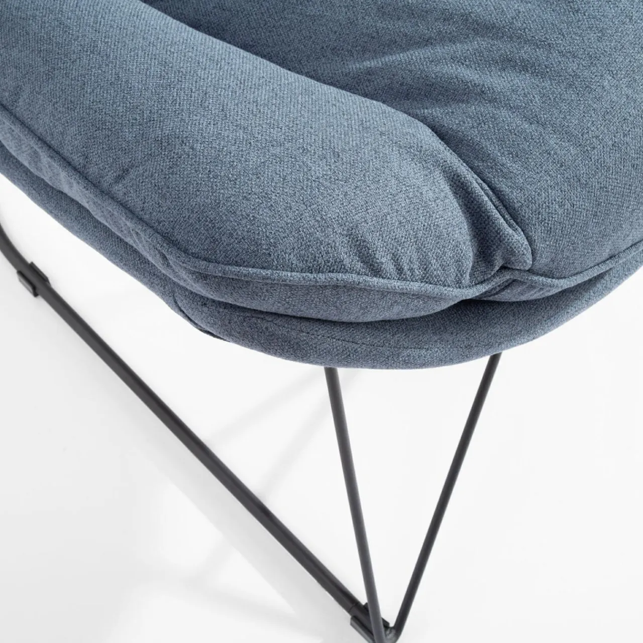 - Metalowa podstawa w czarnym kolorze przełamuje obszerną formę fotela i wpisze się w surowe, industrialne wnętrza.