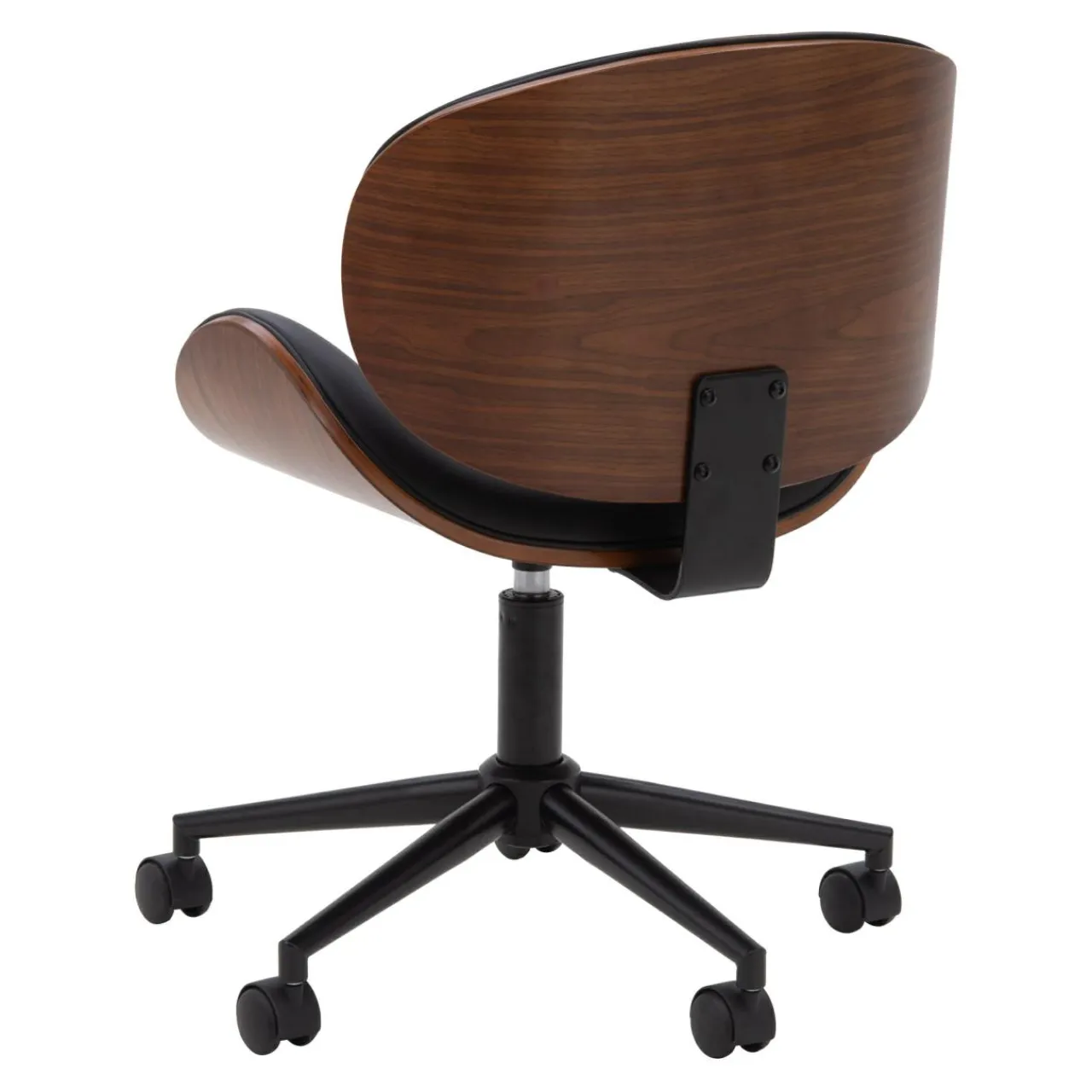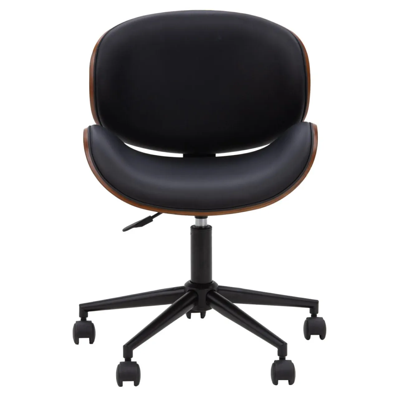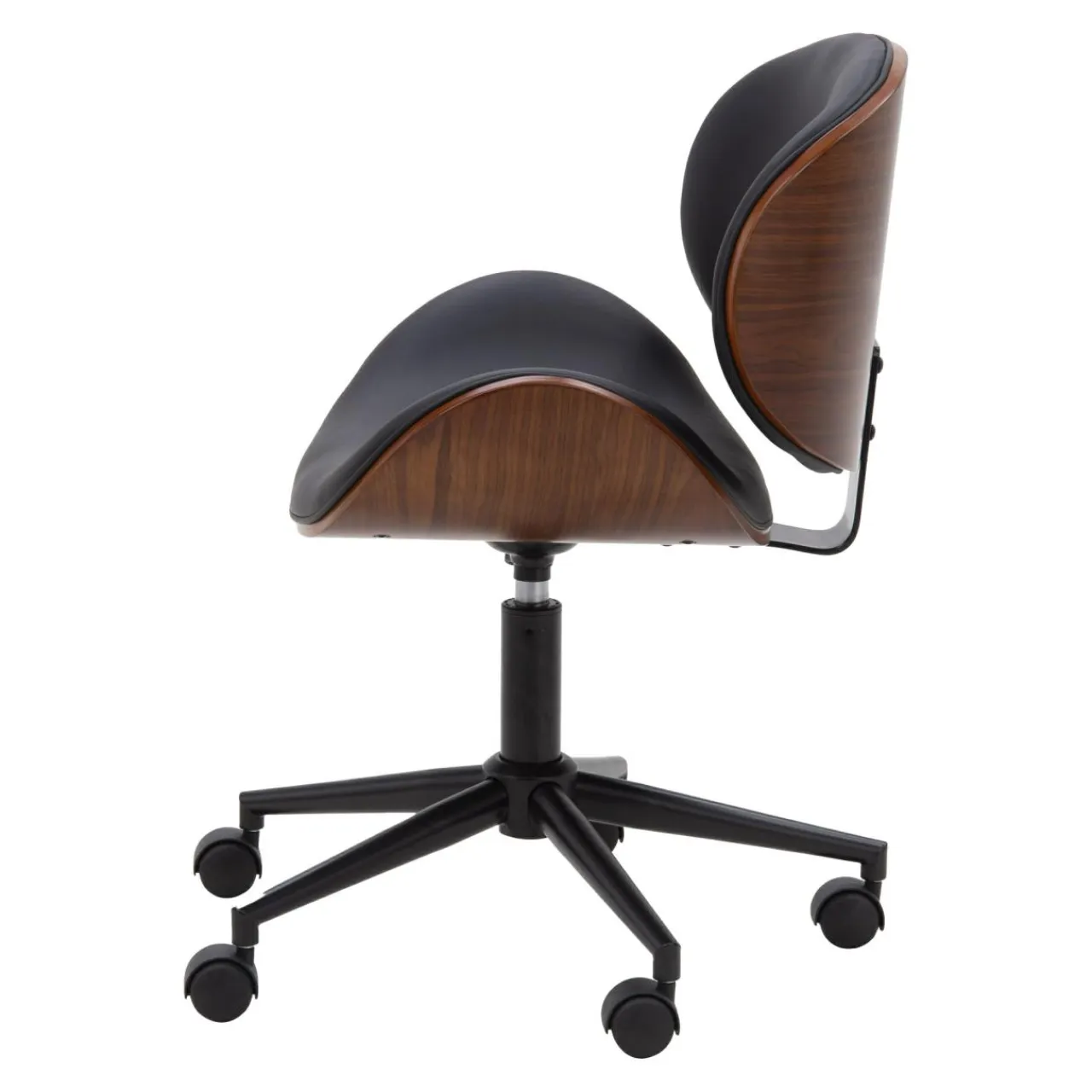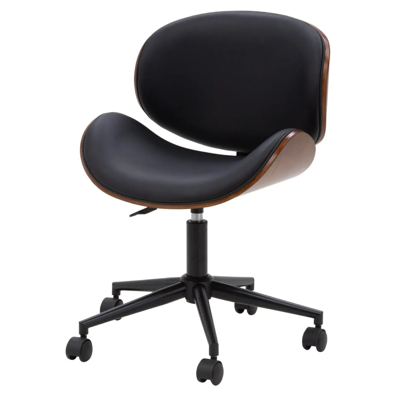 Tapicerka krzesła wykonana jest z ekologicznej skóry w czarnym kolorze. Eleganckie wykończenie krzesła biurowego doda klasy do pomieszczenia.