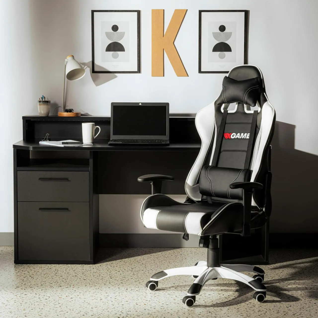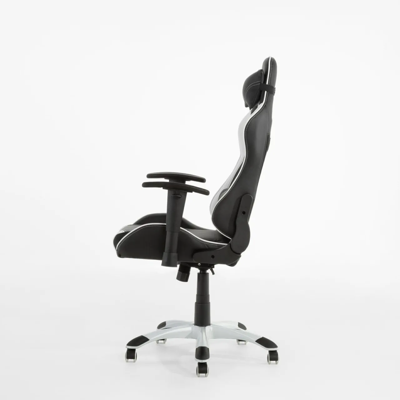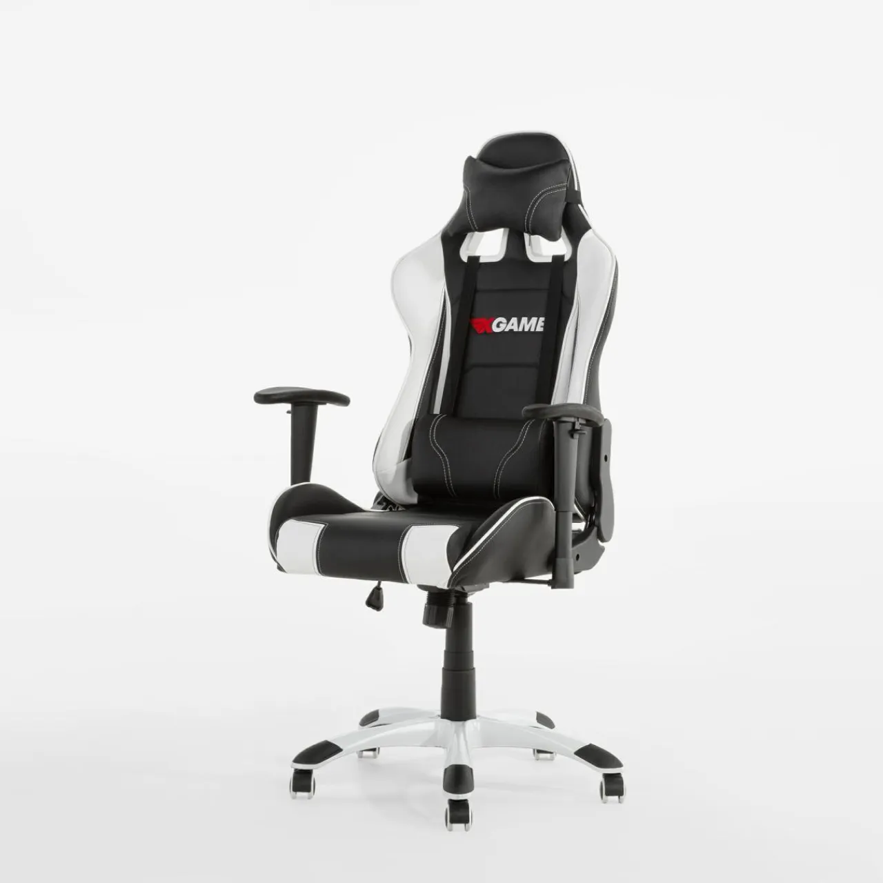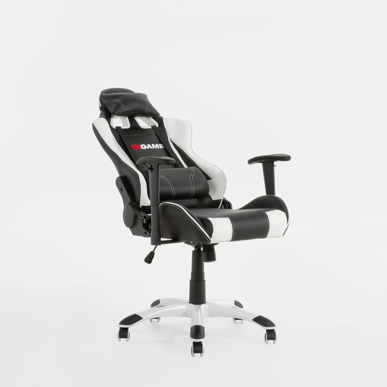 - Fotel wykończono skórą ekologiczną. Czarno-biała kolorystyka mebla nadaje mu typowo sportowy charakter.