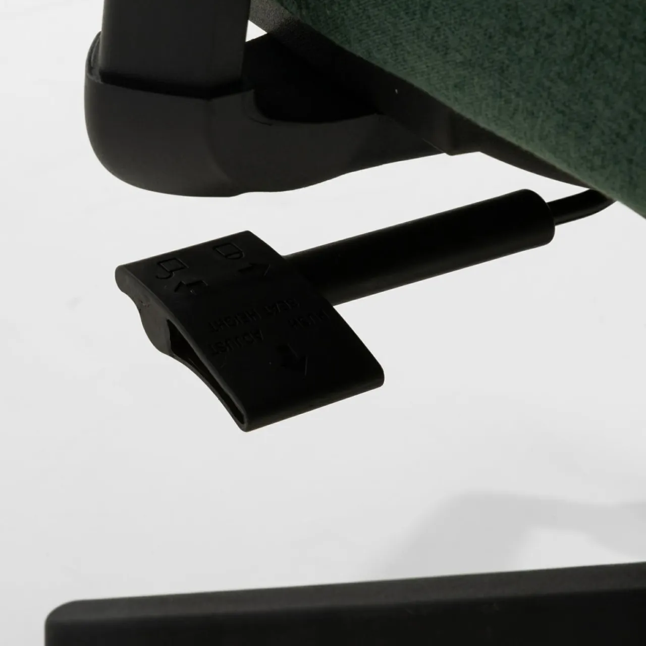 - Dźwignia pod siedziskiem pozwala regulować jego wysokość, co pozwala dostosować fotel do wzrostu użytkownika. Zakres regulacji wysokości siedziska wynosi od 47 cm do 57 cm.