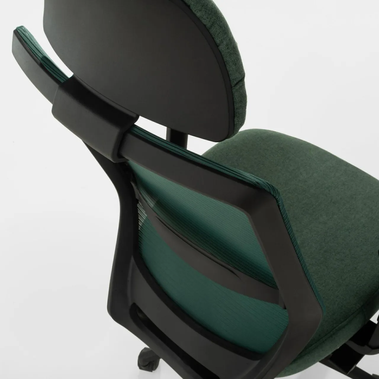 - Siatka mesh na oparciu zapewni przepływ powietrza, co zapewni komfort pracy również w cieplejsze dni.