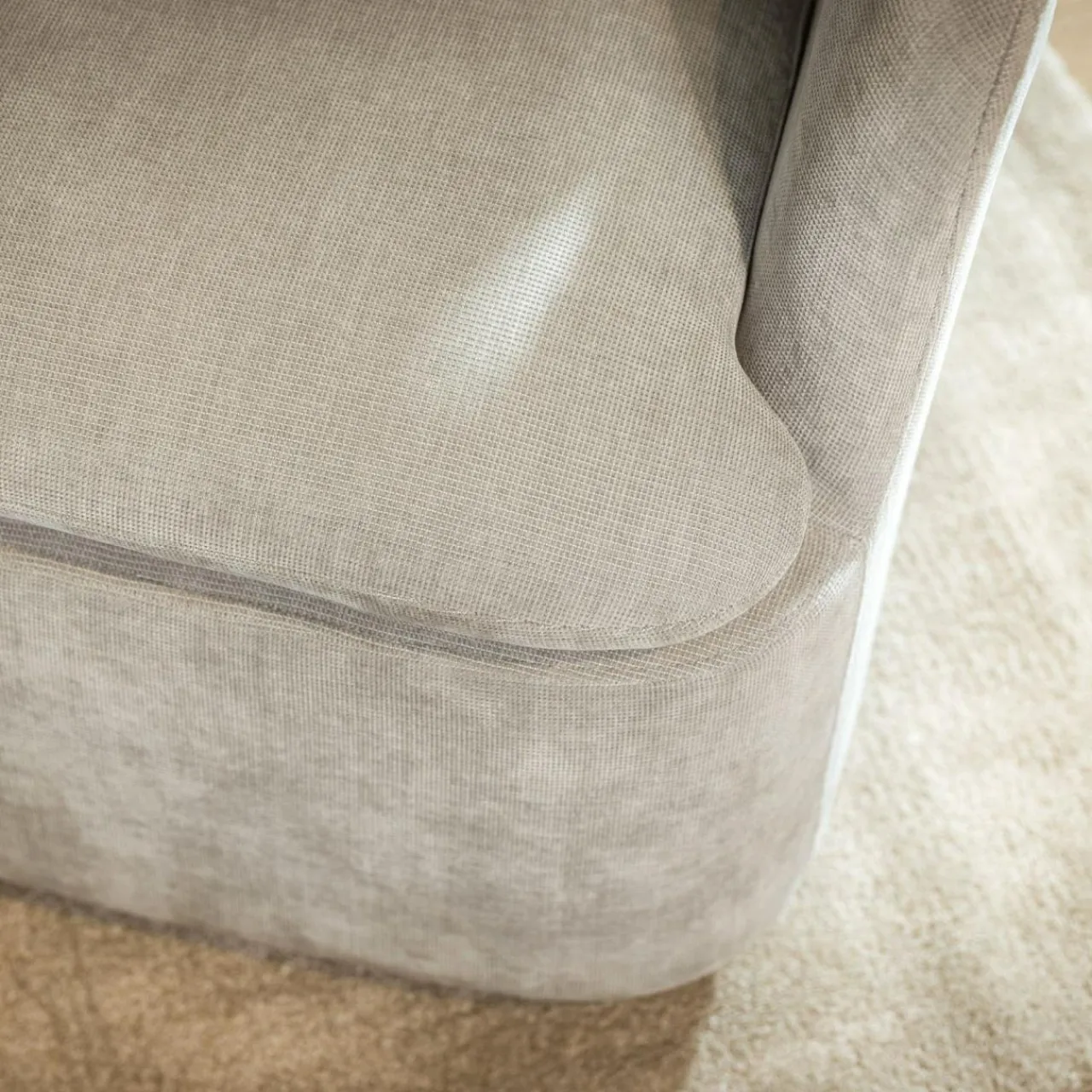 - Obicie zostało wykonane z plecionki o grubym splocie w kolorze szarym.