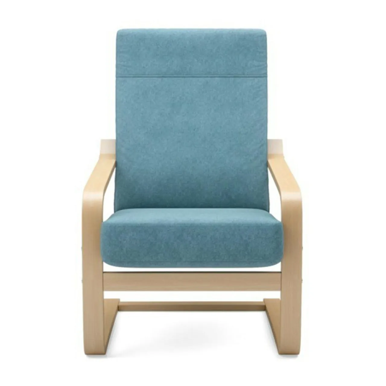 Naturalne drewno bukowe jest idealne do budowy tego typu stelaża, jego odpowiednia elastyczność zapewnia trwałość i komfort mebla, dodatkowo zwiększając jego walory wizualne. Siedzisko i oparcie fotela przeszyto w tkaninie ALFA, o przyjemnej w dotyku fakturze.