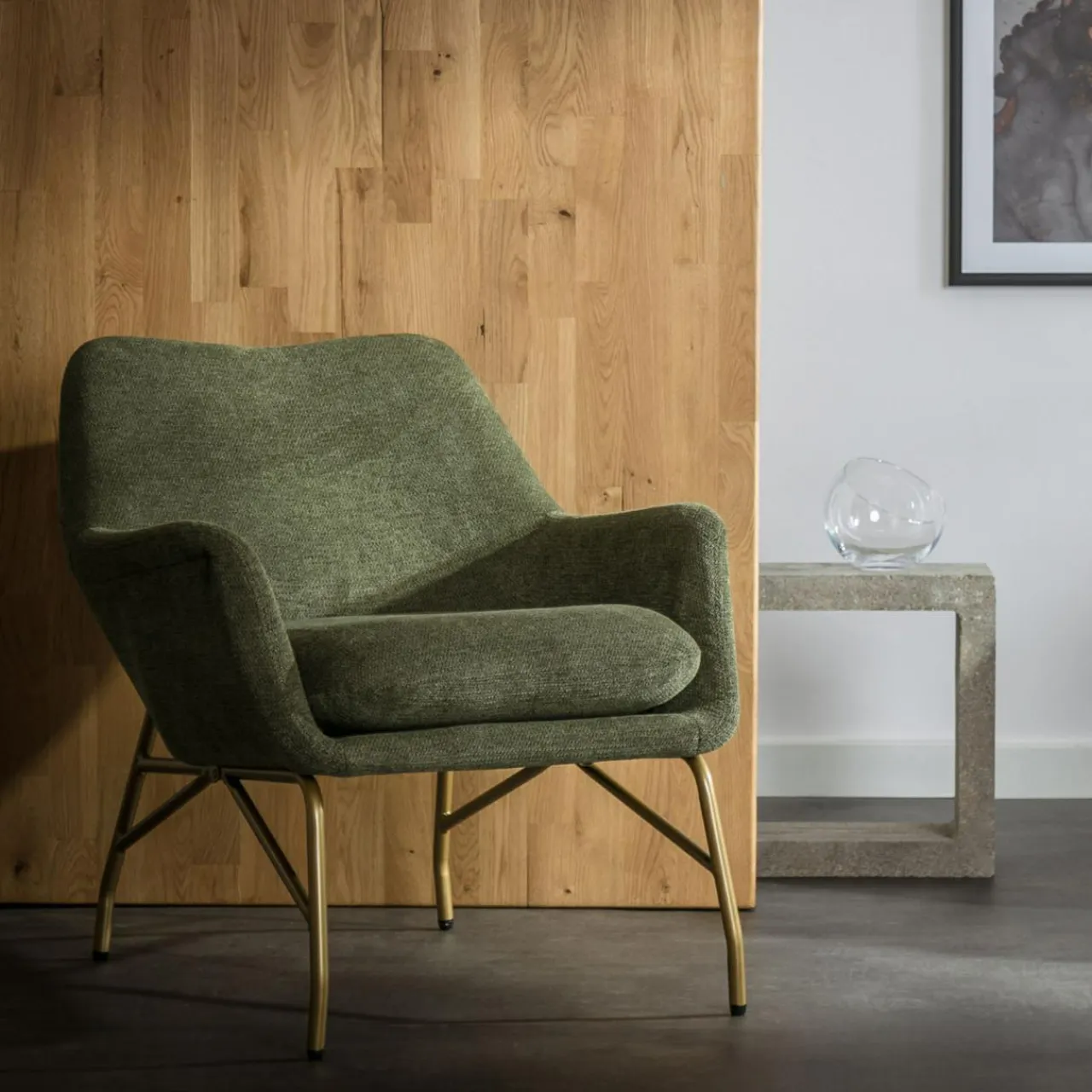 - Konstrukcja podtrzymuje złota podstawa na nogach, która podkreśla designerski wygląd fotela.