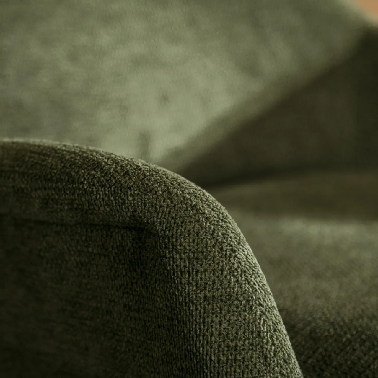 - Tapicerka została wykonana ze strukturalnej tkaniny ARAGON w oliwkowym kolorze.