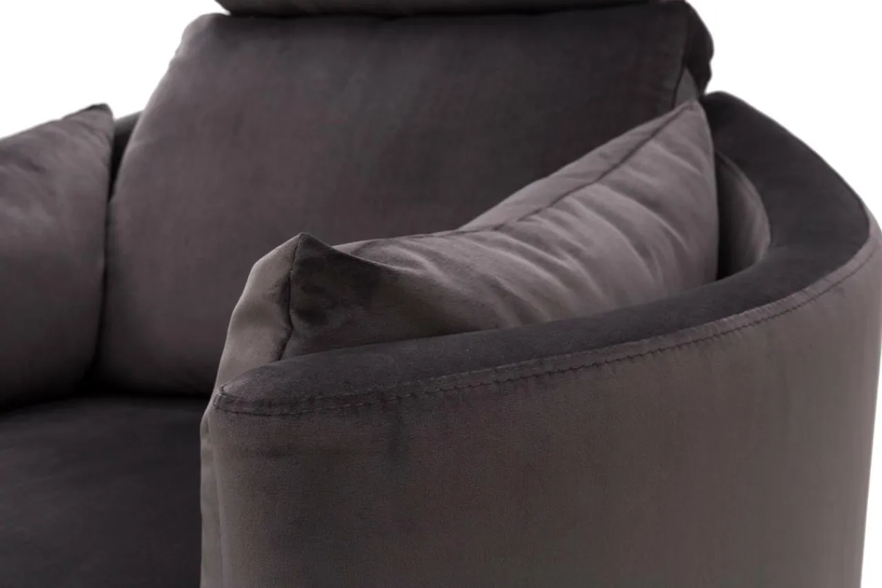 Miękka welurowa tkanina oraz sprężyny faliste wykorzystane w siedzisku sprawiają, że fotel sprawdzi się jako wygodne siedzenie.