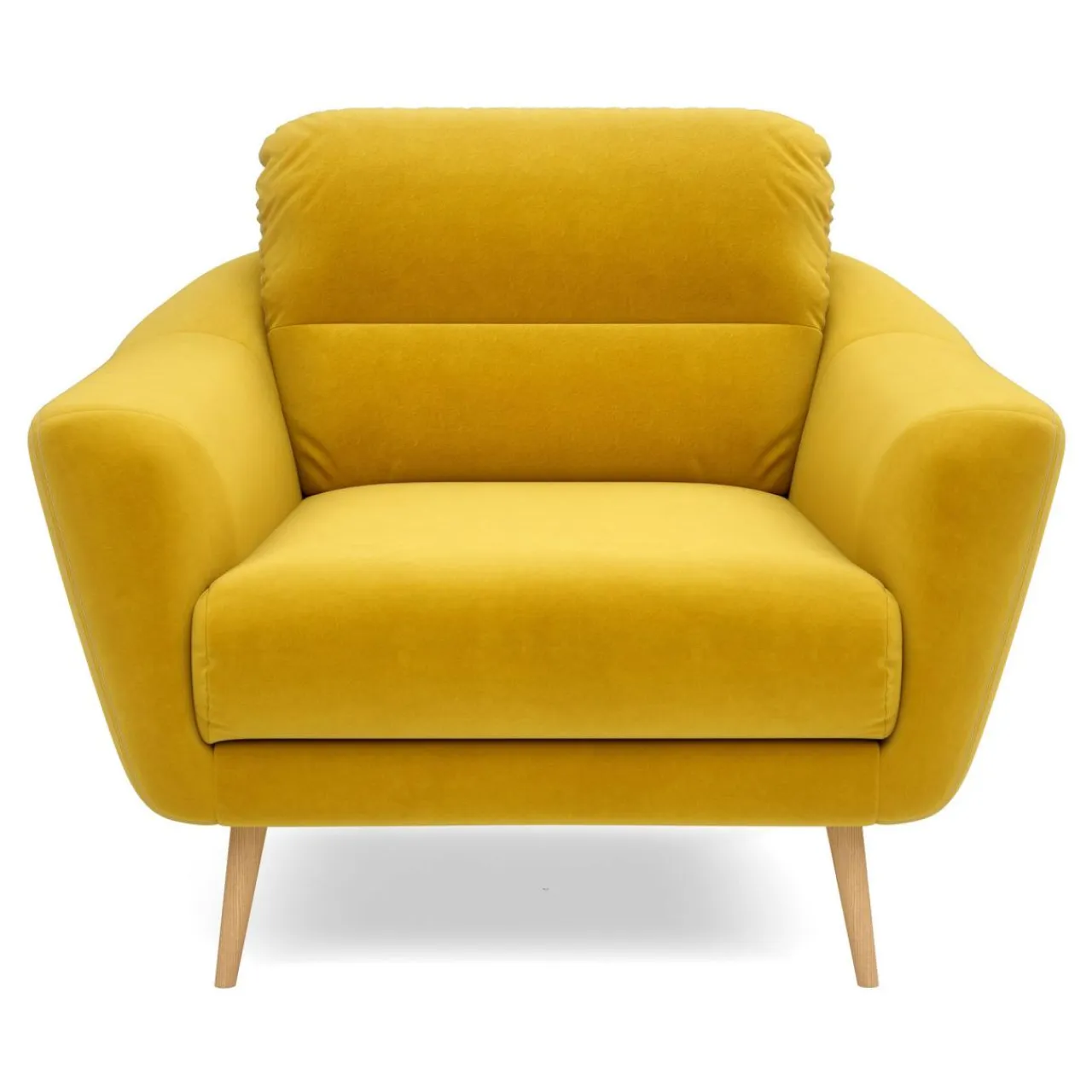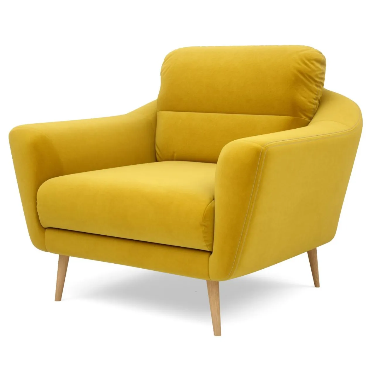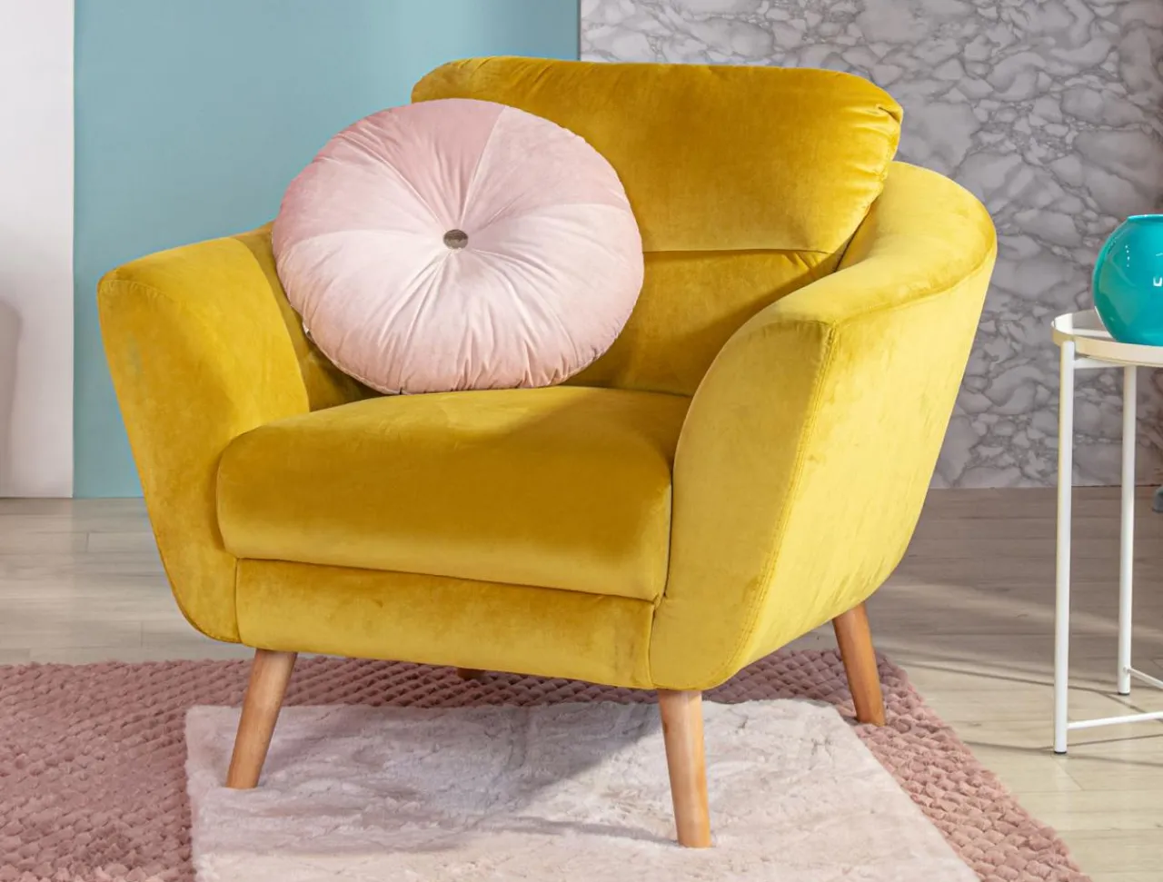 - Fotel wypoczynkowy TROMSO został przeszyty w całości tkaniną MAGIC VELVET o pięknym musztardowym kolorze.