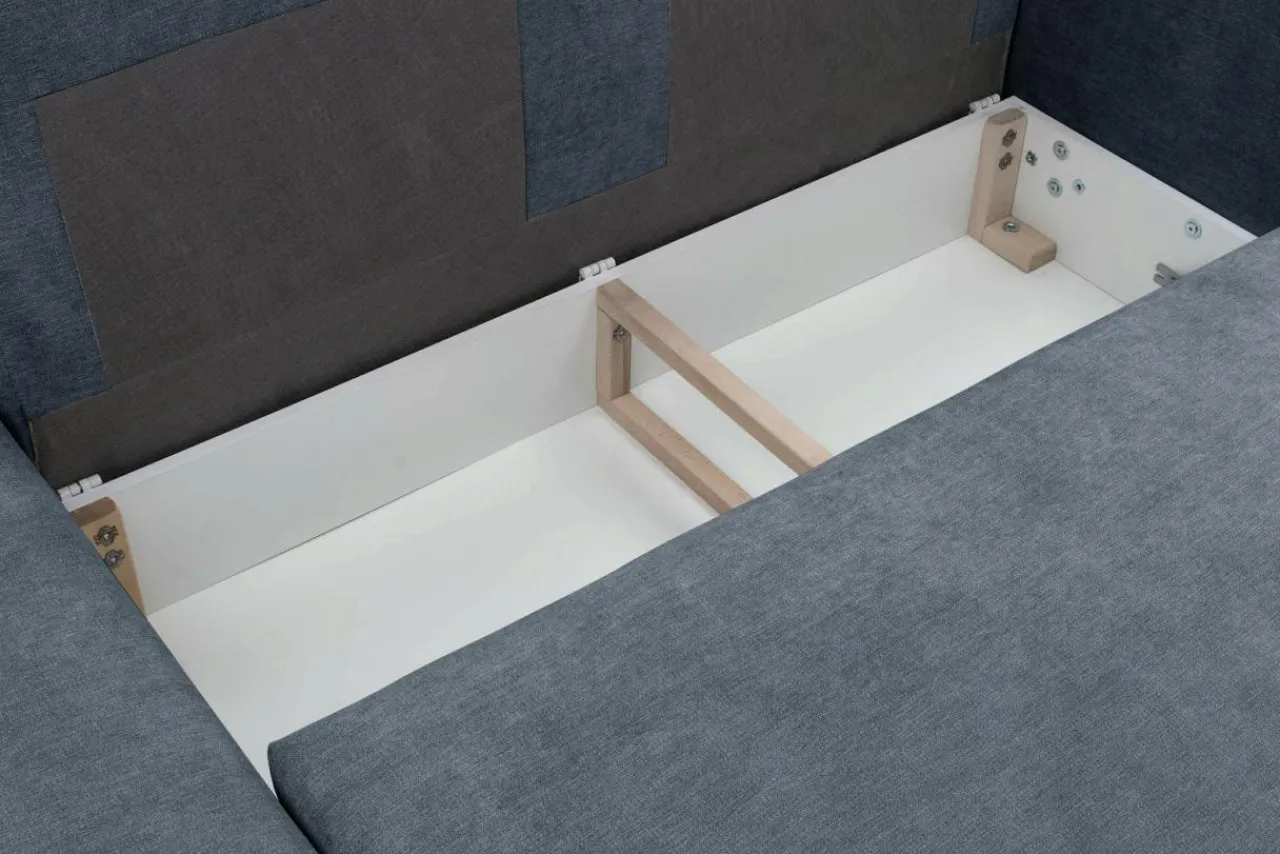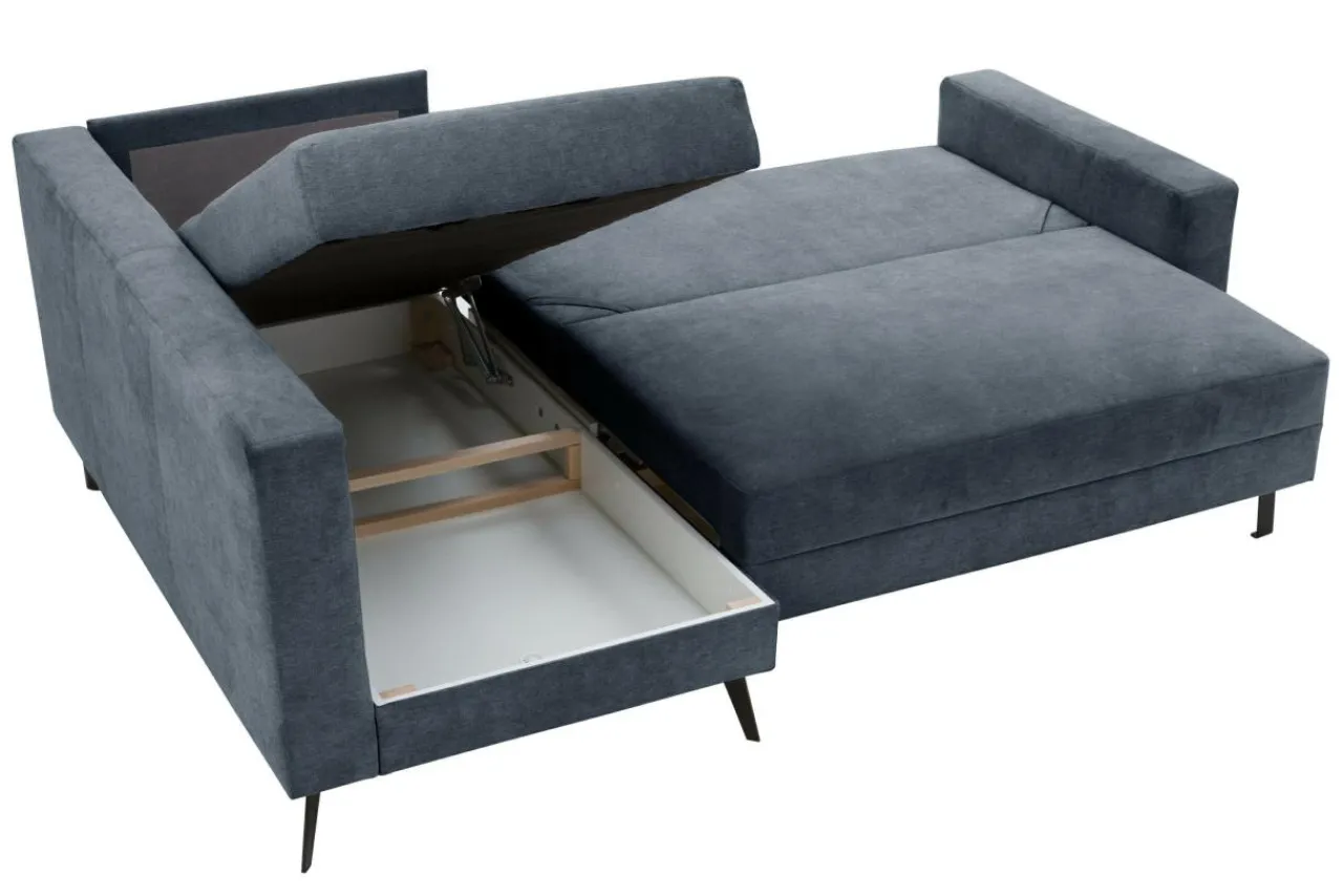 Narożnik jest wyposażony w funkcję z mechanizmem ułatwiającym rozkładanie. Komfort spania jest taki sam po obu stronach dzięki sprężynom falistym.