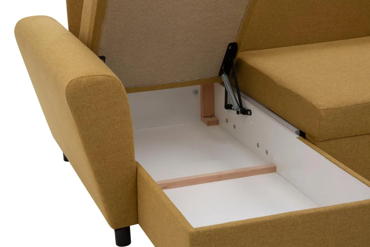 - Narożnik posiada aż 2 pojemniki, które możesz wykorzystać zarówno jako schowki na pościel, jak i przestrzeń do przechowywania na drobiazgi.