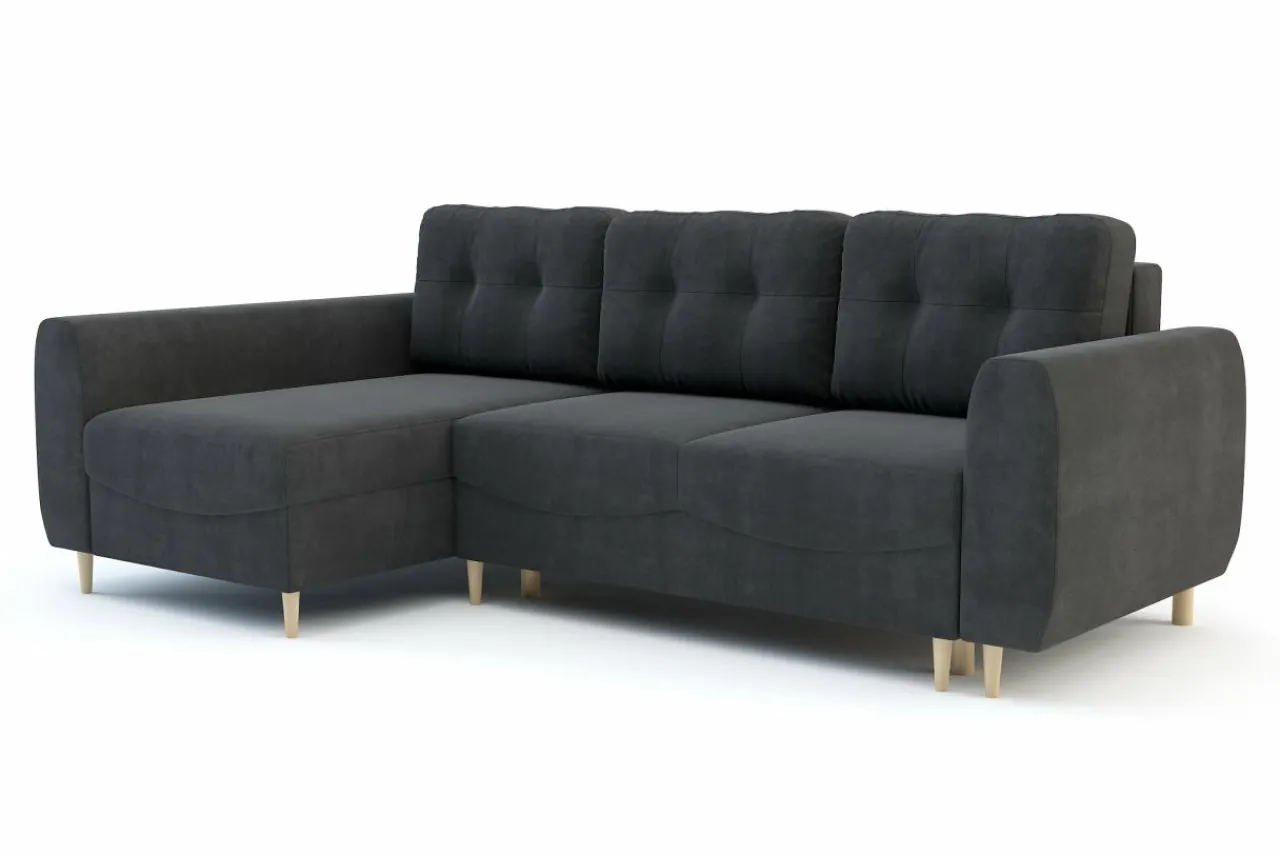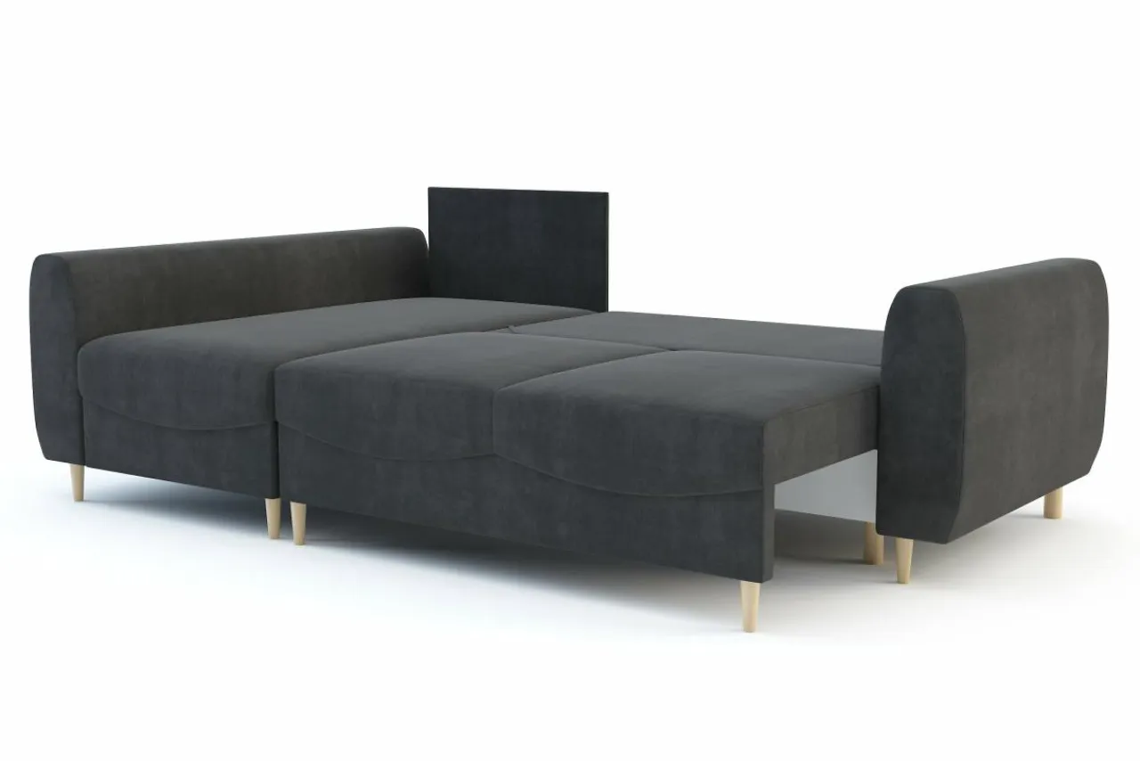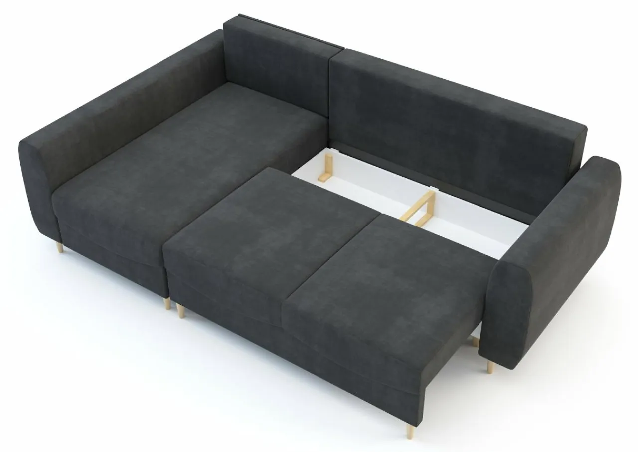 - Drewniane nóżki są solidne i nadają narożnikowi nowoczesnego charakteru.
