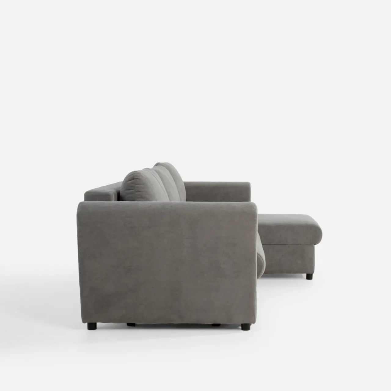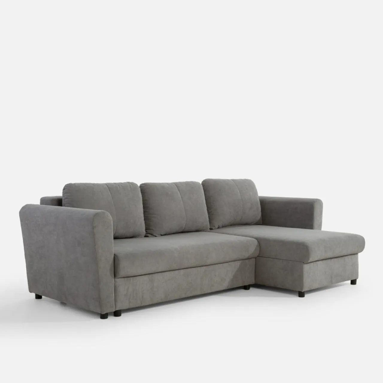 Narożnik CALPO pokryto przyjemną w dotyku tkaniną, która umili Ci pochmurne wieczory. Szary kolor dopełni wnętrze urządzone w stylu nowoczesnym.