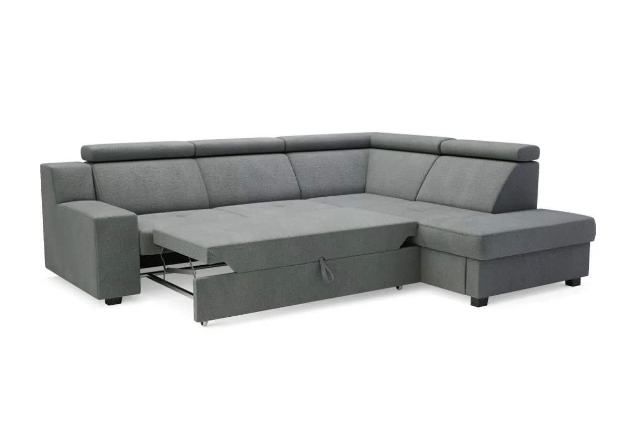 Stelaż pod siedziskiem wysuwamy i podnosimy za pomocą uchwytu. Mebel nie wymaga odsuwania od ściany. Idealny do okazjonalnego spania.