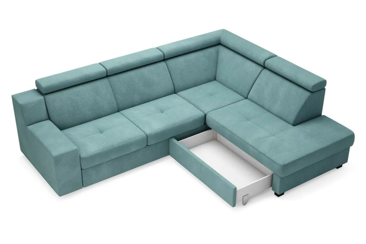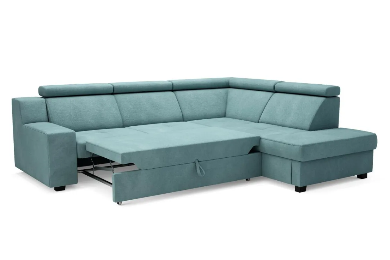 Stelaż pod siedziskiem wysuwamy i podnosimy za pomocą uchwytu. Mebel nie wymaga odsuwania od ściany. Idealny do okazjonalnego spania.