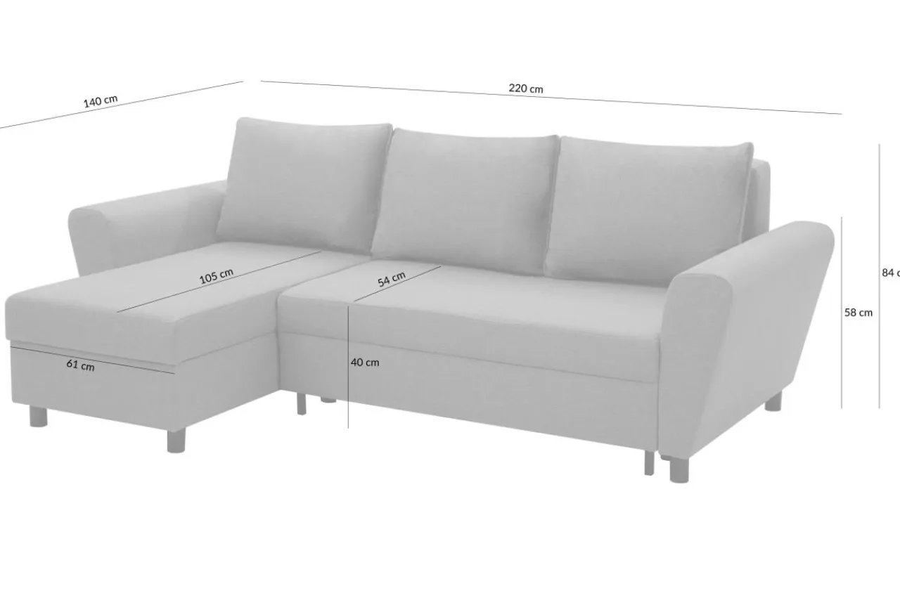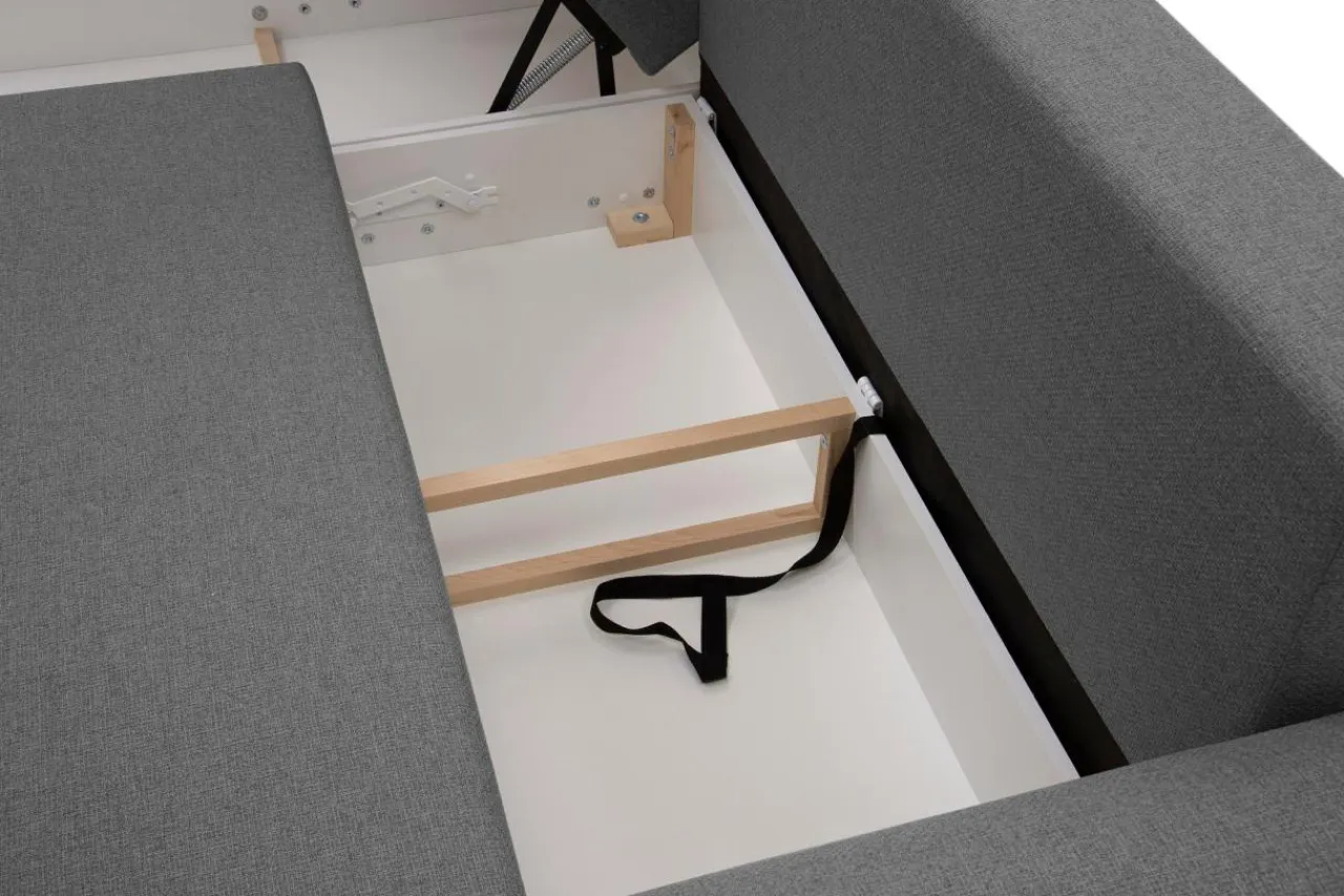 - Narożnik posiada aż 2 pojemniki, które możesz wykorzystać zarówno jako schowki na pościel, jak i przestrzeń do przechowywania na drobiazgi.