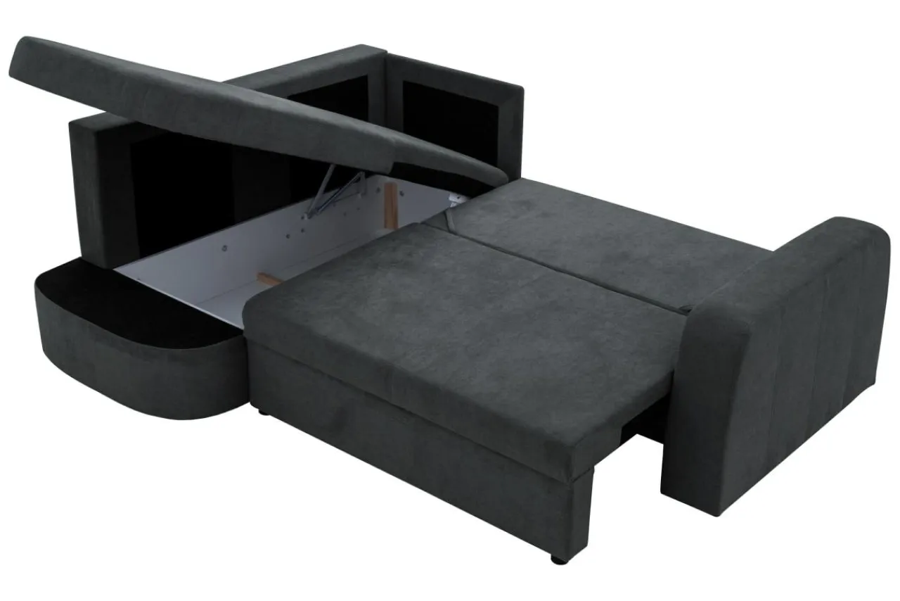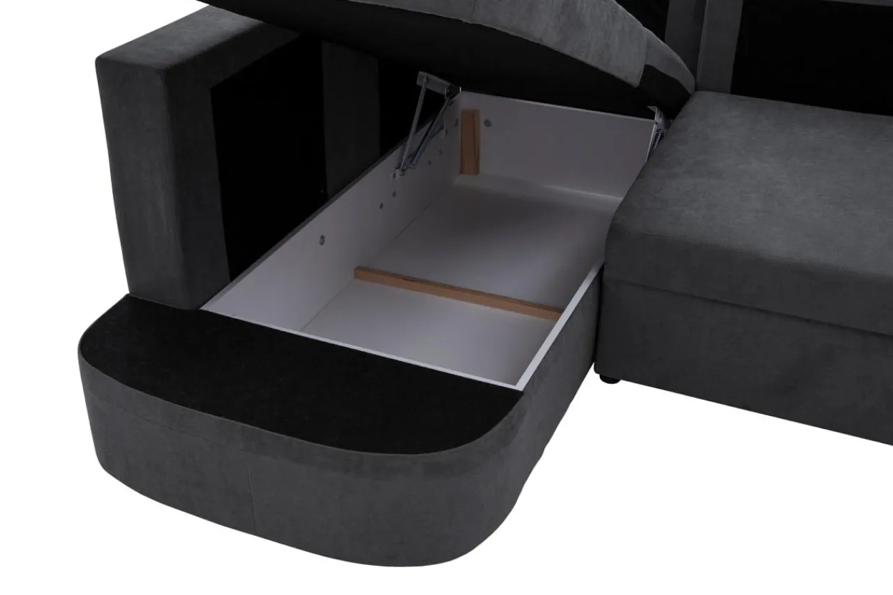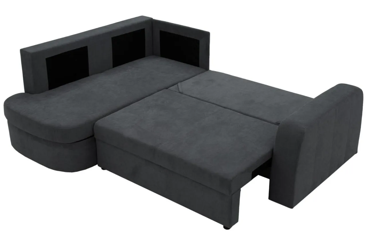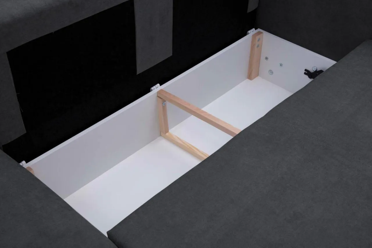 - W narożniku mieszczą się 2 pojemniki na pościel.