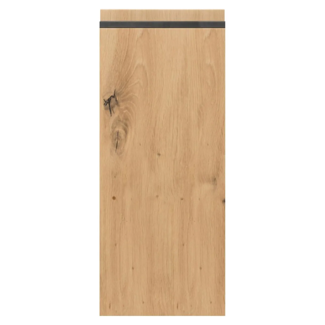 Dekor w kolorze drewna z doskonale widocznym usłojeniem sprawia, że front świetnie wygląda w połączeniu z jasnymi odcieniami bieli i szarości. Dodatkową zaletą jest uchwyt w formie frezu wykończonego czarną aluminiową listwą.