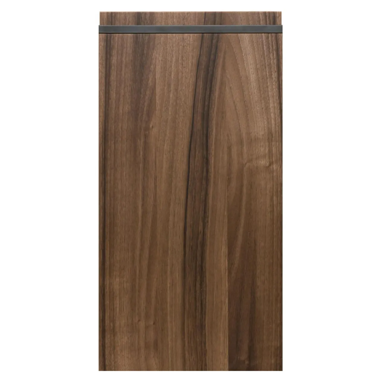 Dekor w kolorze drewna z doskonale widocznym usłojeniem sprawia, że front świetnie wygląda w połączeniu z jasnymi odcieniami bieli i oraz czerni. Dodatkową zaletą jest uchwyt wykończony czarną, aluminiową listwą.