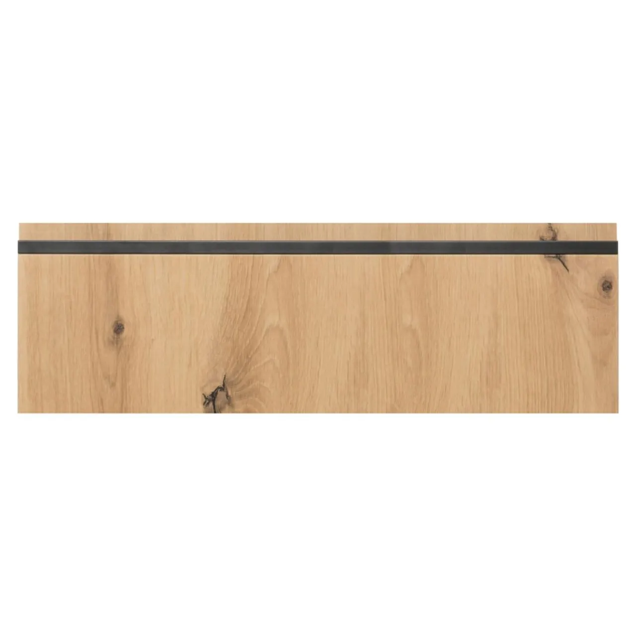 Dekor w kolorze drewna z doskonale widocznym usłojeniem sprawia, że front świetnie wygląda w połączeniu z jasnymi odcieniami bieli i szarości. Dodatkową zaletą jest uchwyt w formie frezu wykończonego czarną aluminiową listwą.