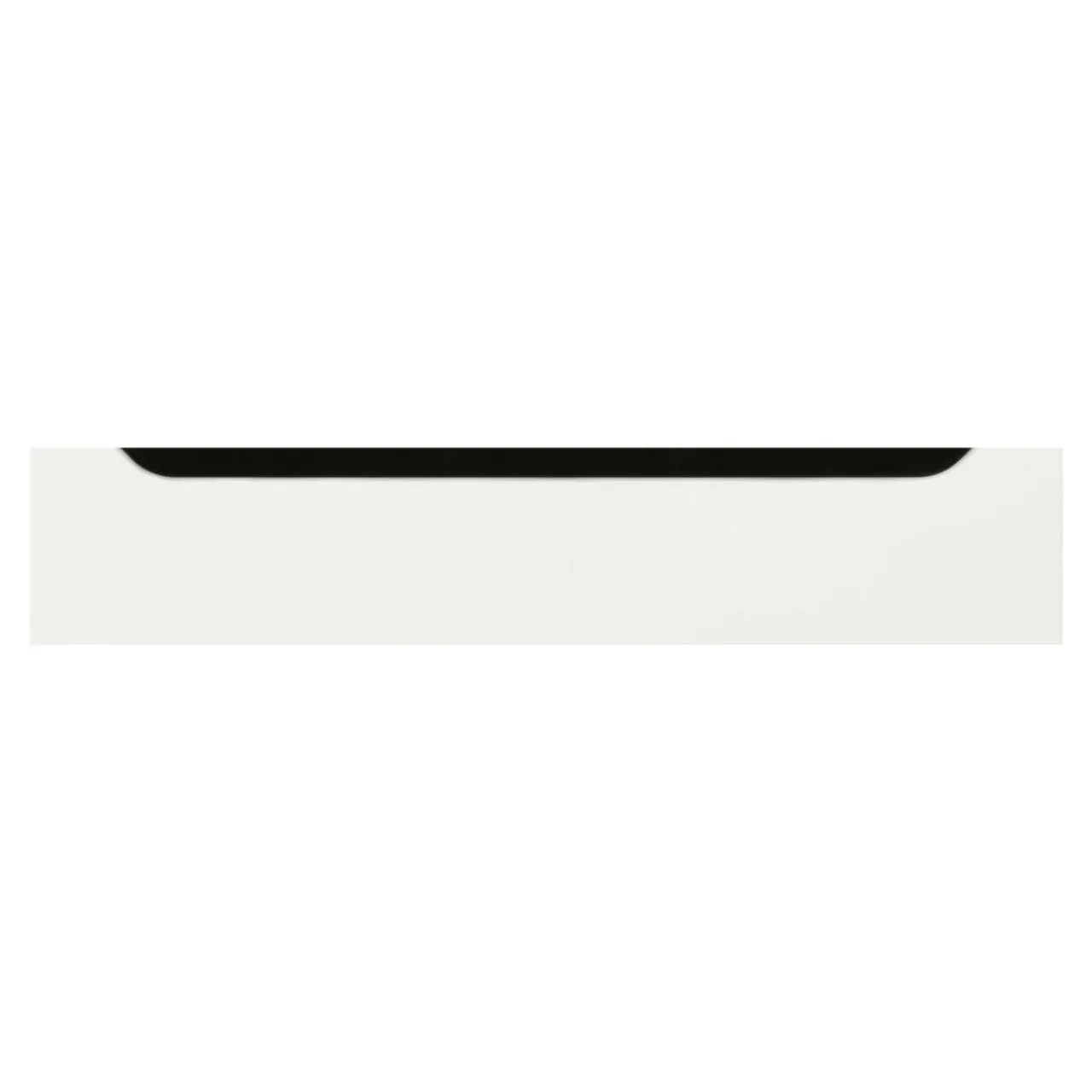 Dekor w białym kolorze z połyskiem sprawia, że front świetnie wygląda w połączeniu zarówno z jasnymi, jak i ciemnymi aranżacjami. Dodatkową zaletą jest uchwyt w formie frezu ze wstawką z czarnego lacobelu.