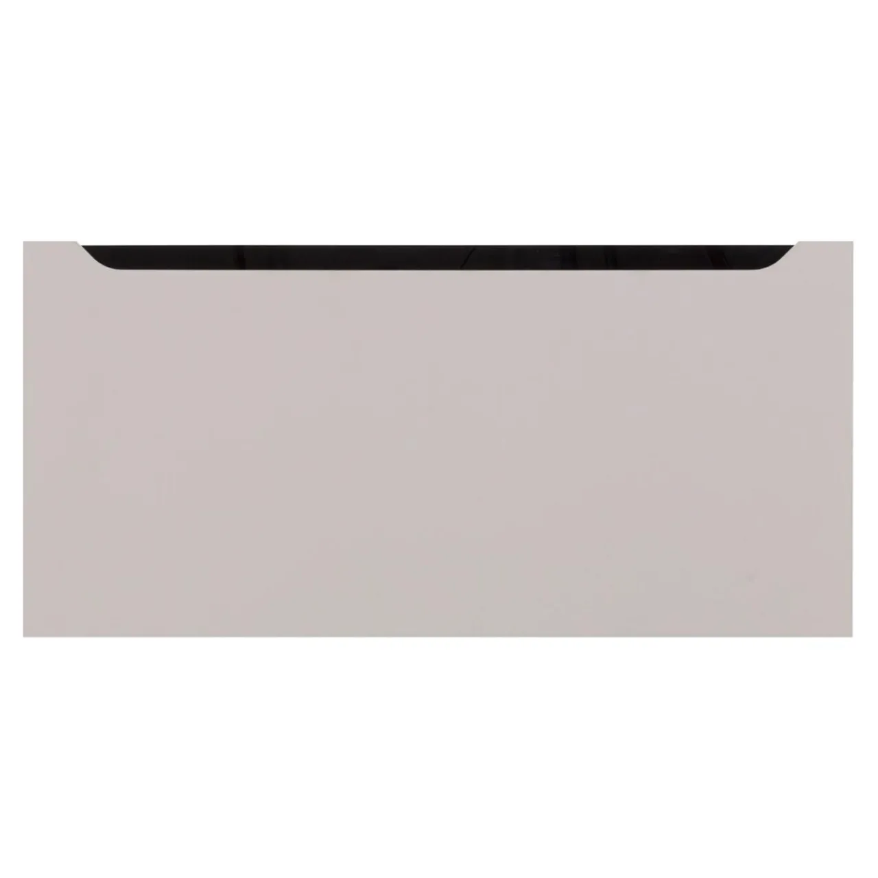 Niewątpliwą jego zaletą jest również łatwość czyszczenia, wysoka odporność na ścieranie. Dekor w ciepłym, szarym kolorze sprawia, że front świetnie wygląda w połączeniu zarówno z jasnymi, jak i ciemnymi aranżacjami. Dodatkową zaletą jest uchwyt w formie frezu ze wstawką z czarnego lacobelu.